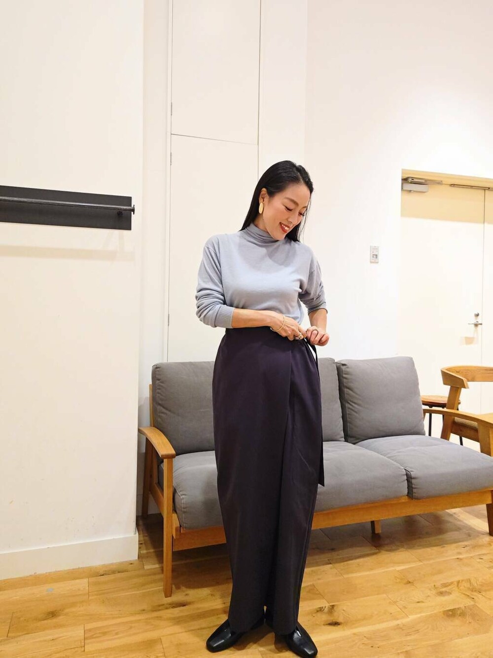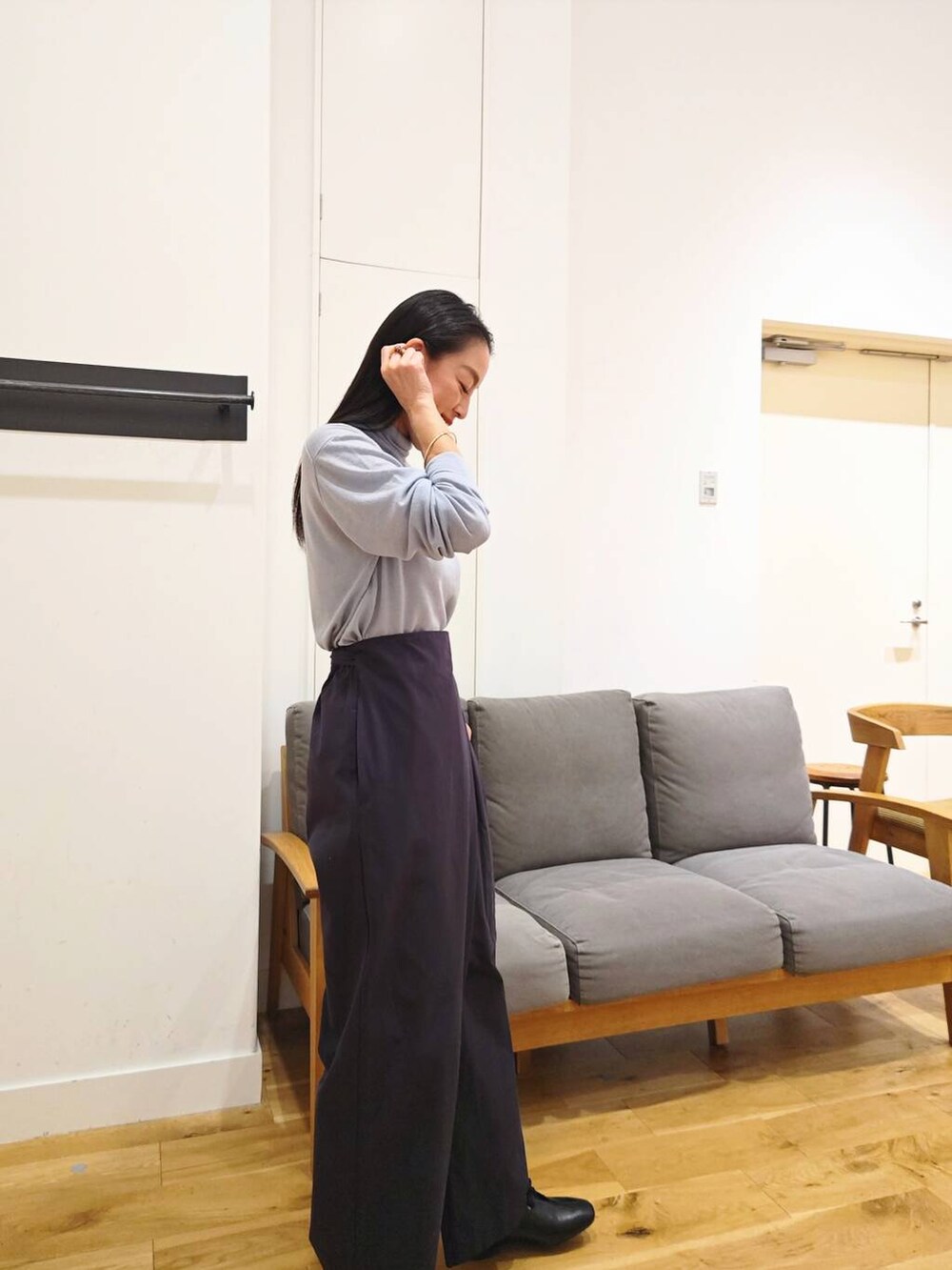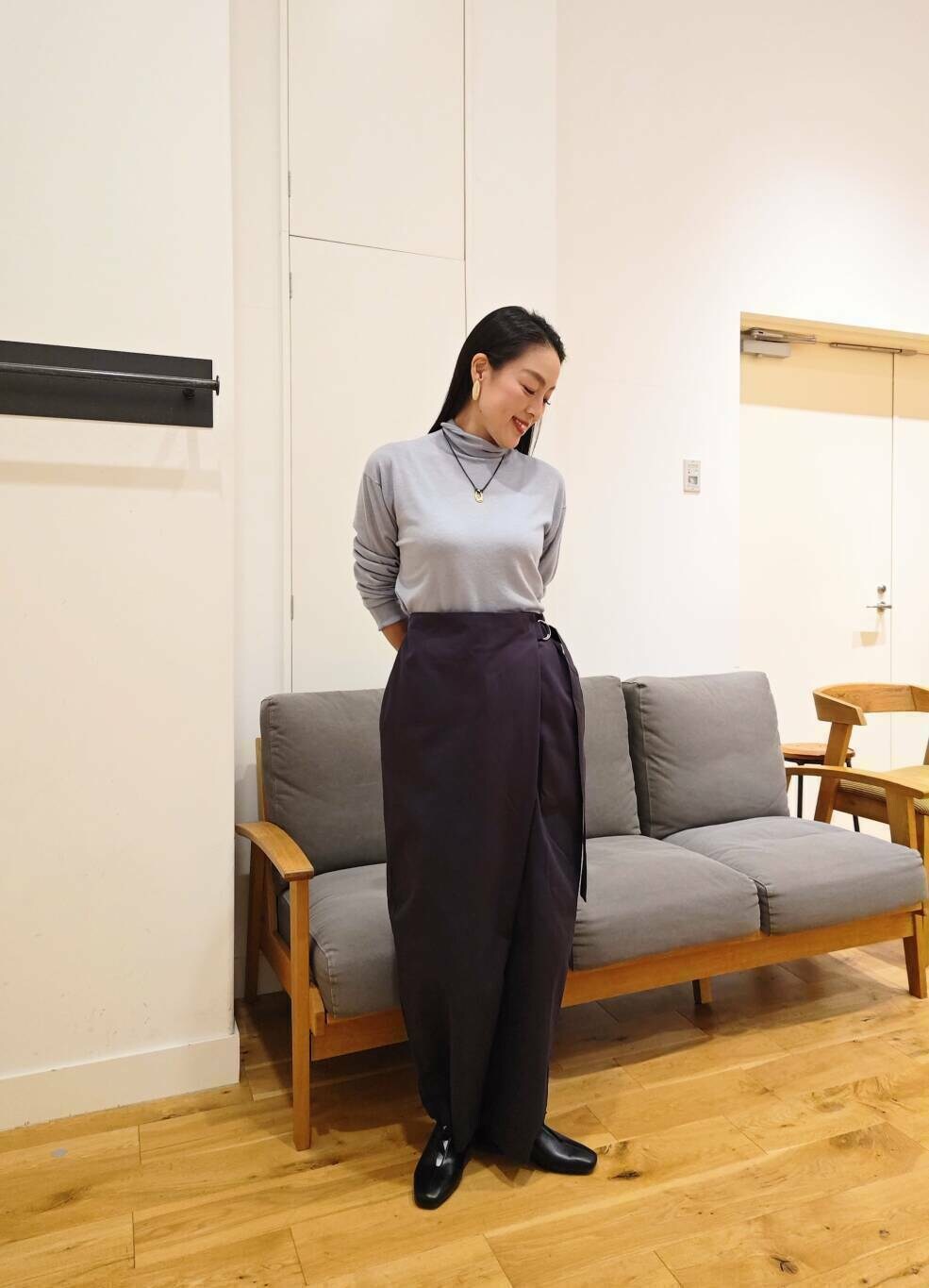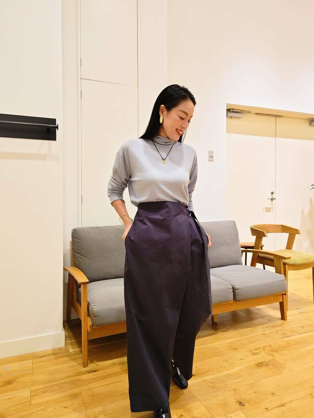 シンプルなトップスに合わせてパンツが主役になるコーディネートがオススメ。