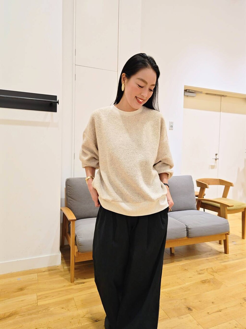 スウェット感覚でニットみたいに着て頂けるボアプルオーバー。