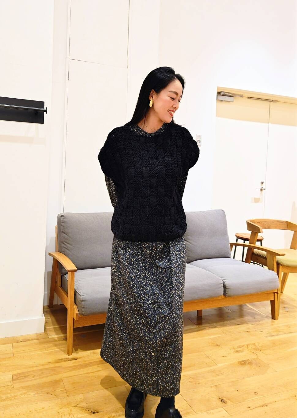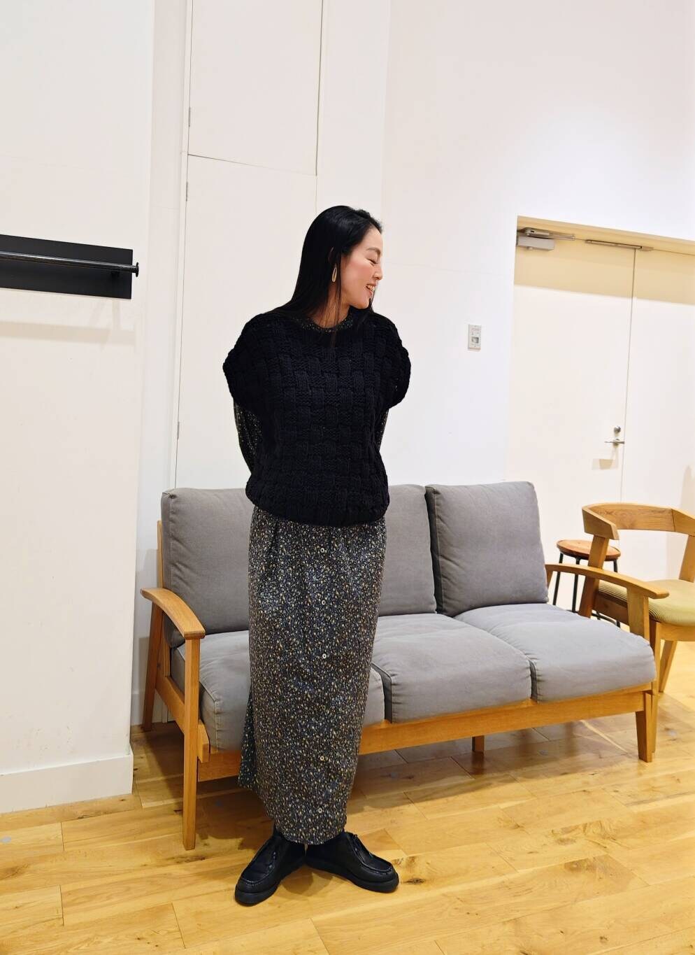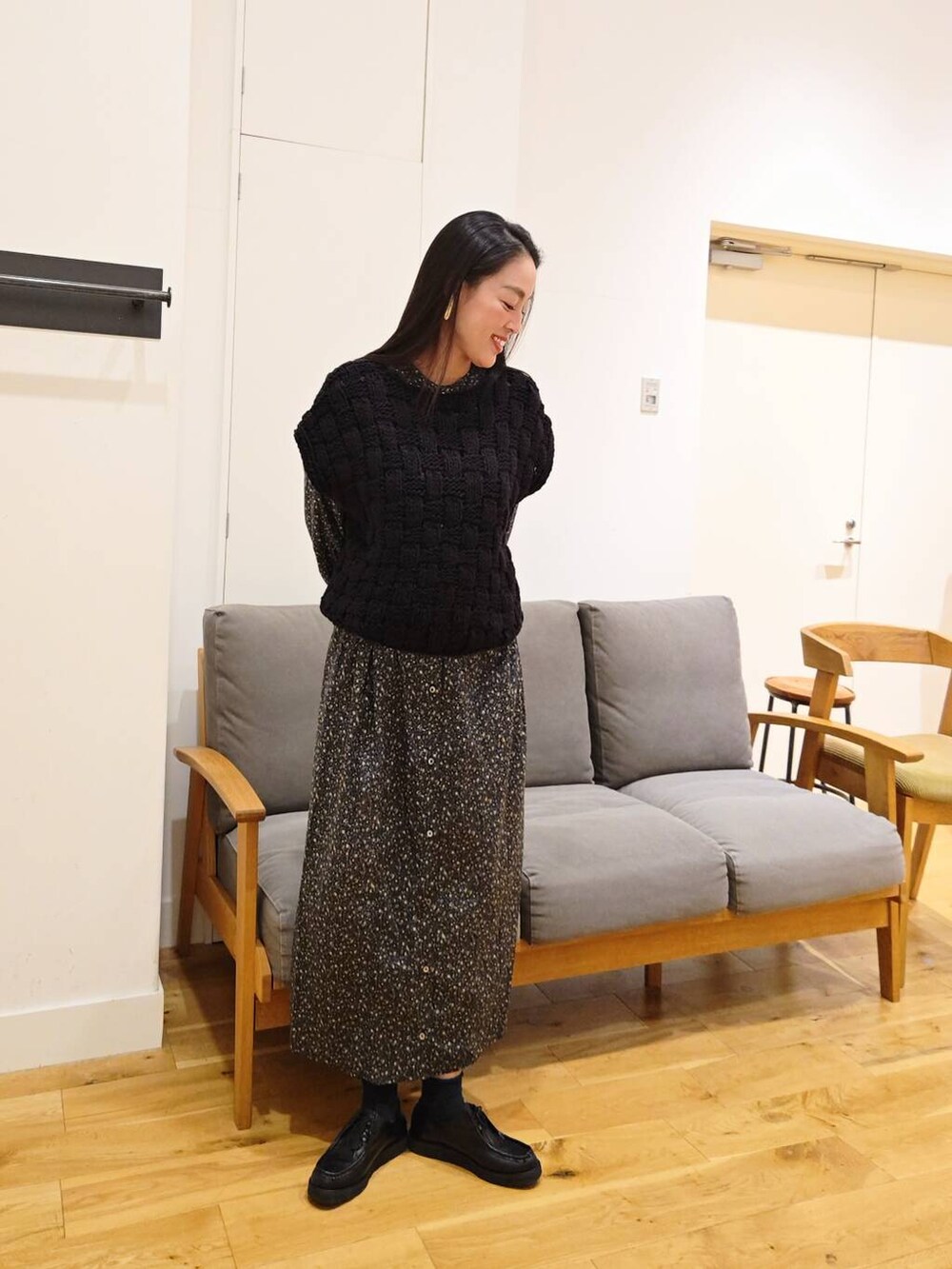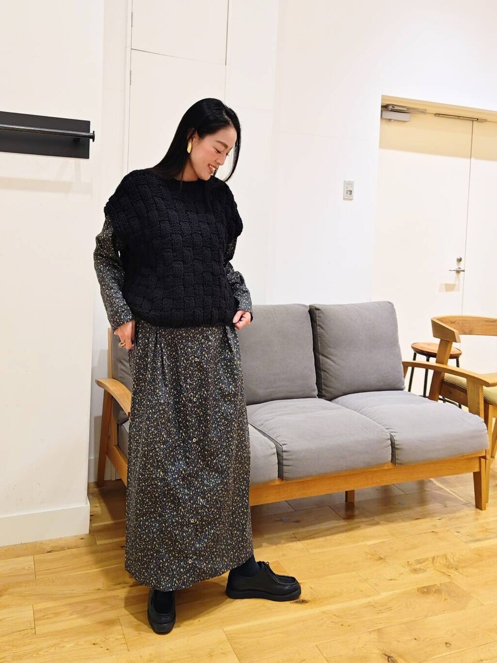 小花柄ですがダークトーンなので可愛い過ぎず大人っぽく着て頂けます。