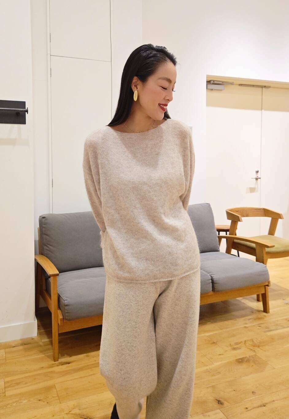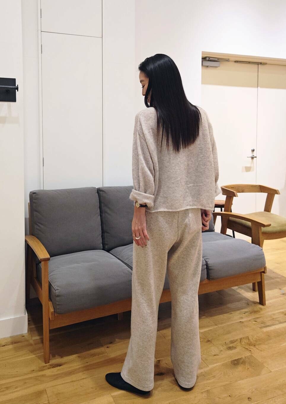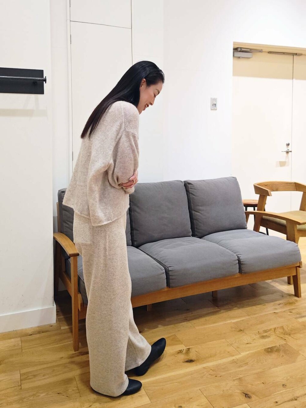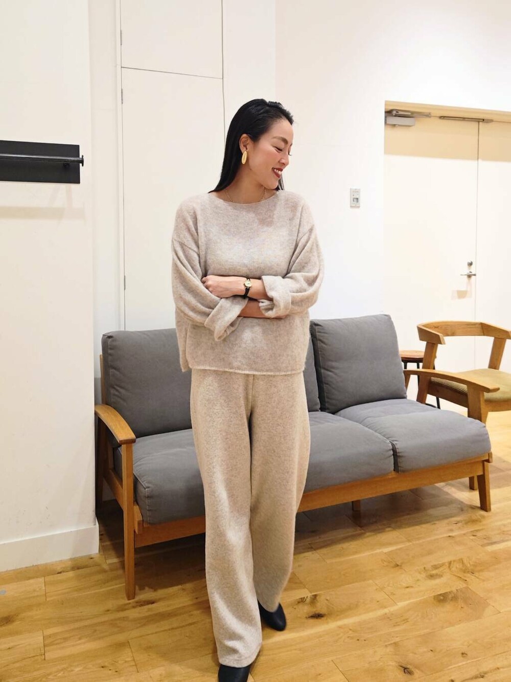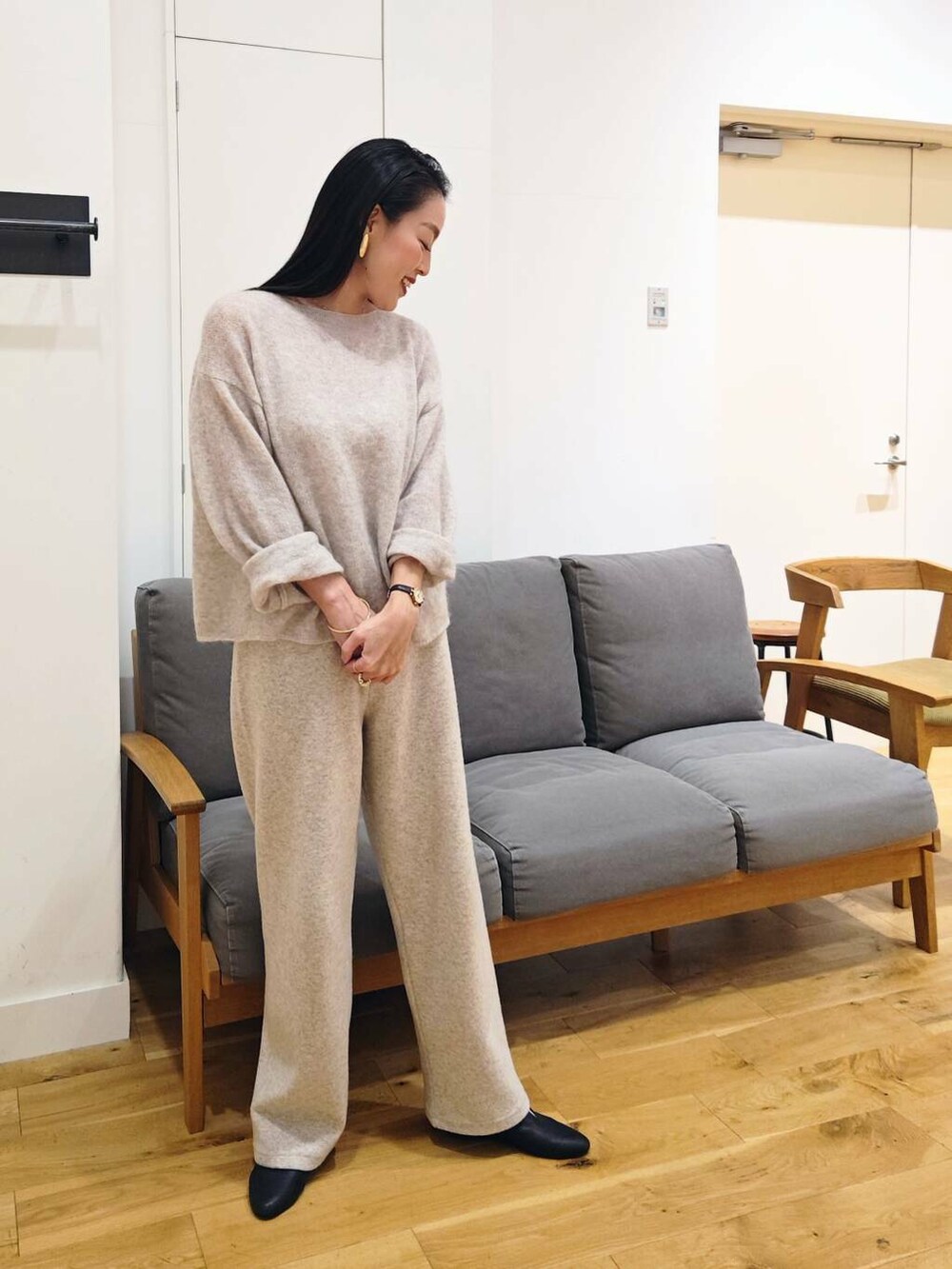 からだの線を拾いにくく、ストンとしたストレートパンツ。