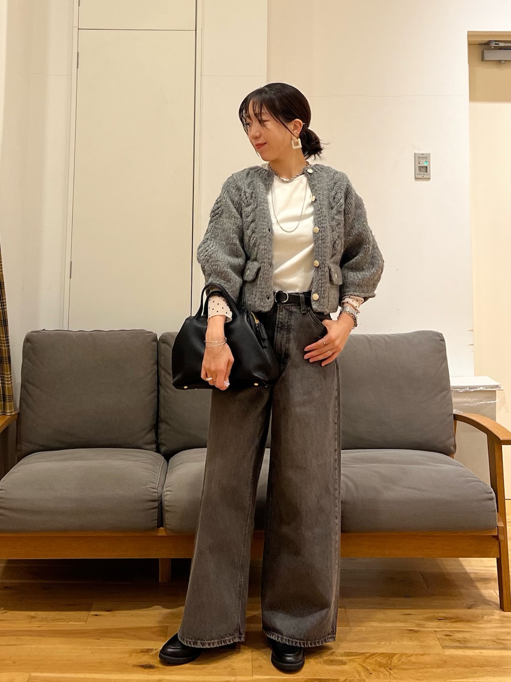 インナーのカットソーはこれからの季節、レイヤードスタイルにとても便利なアイテムですよ♪♪