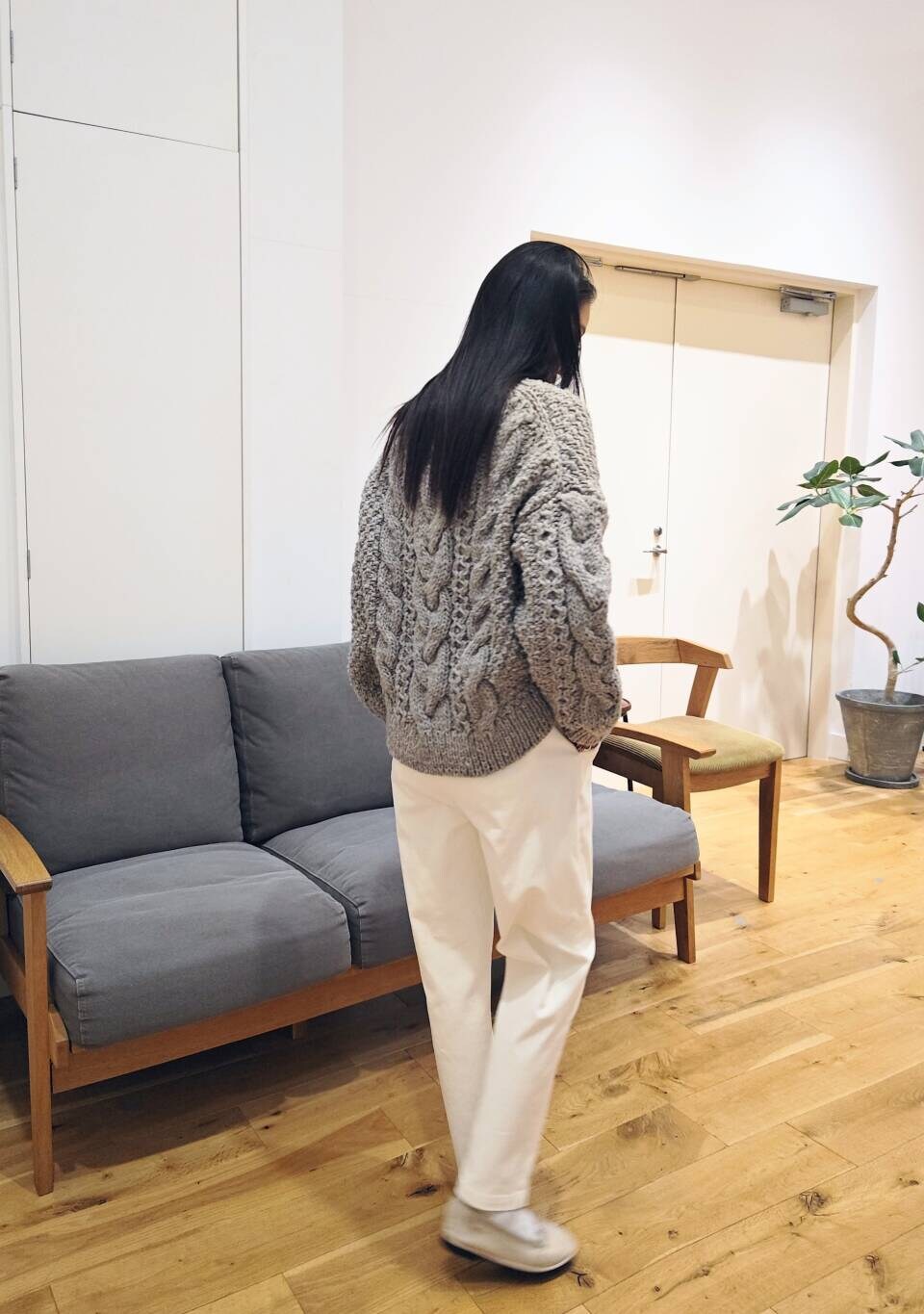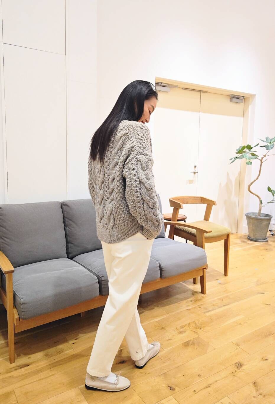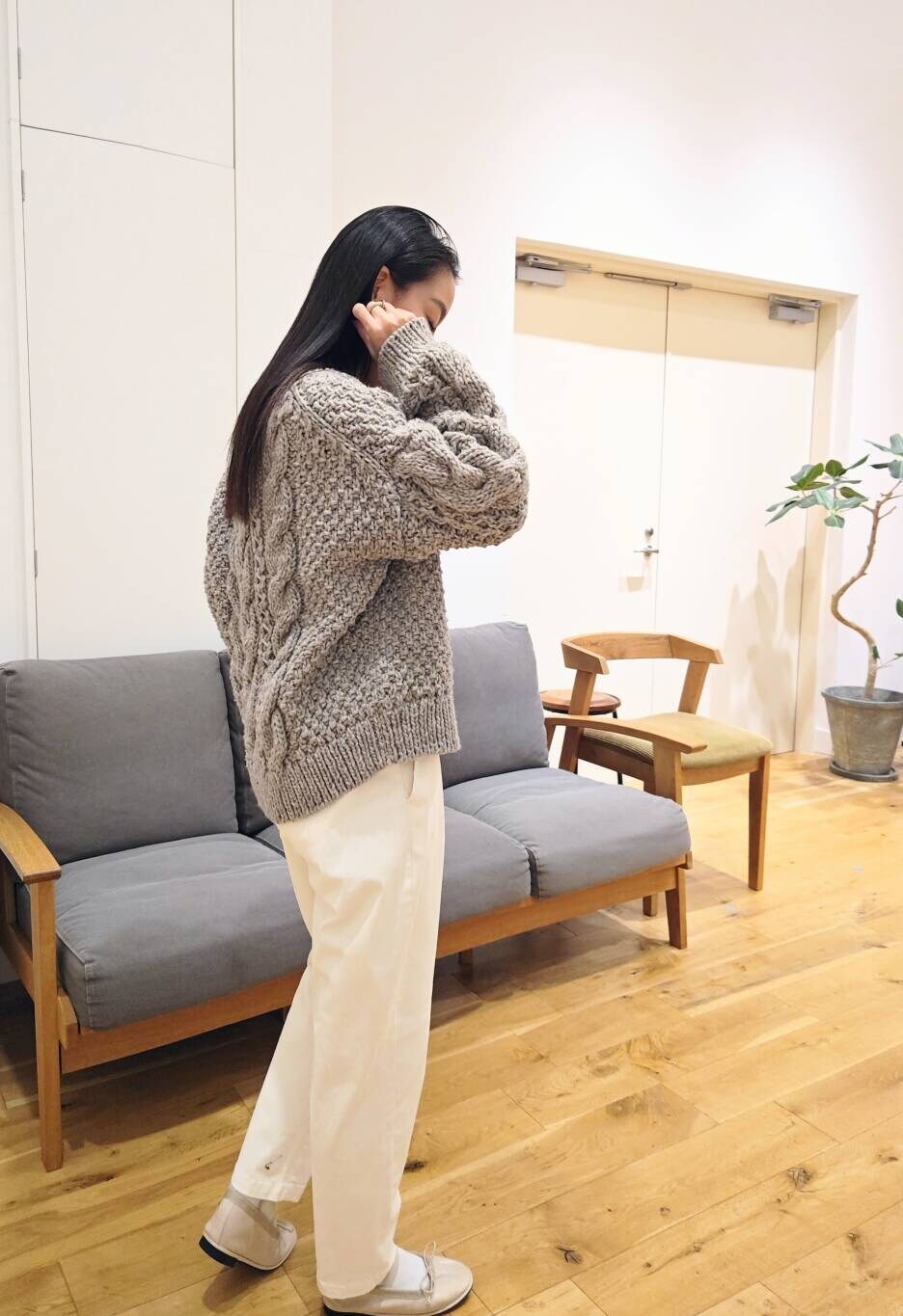 ざっくりとした感じがスカート合わせや、ワンピースの上から着ても◎