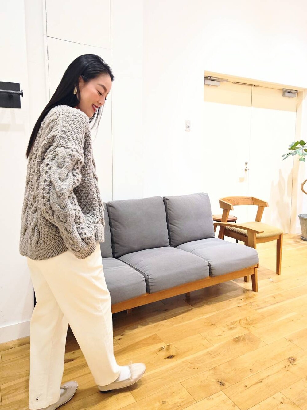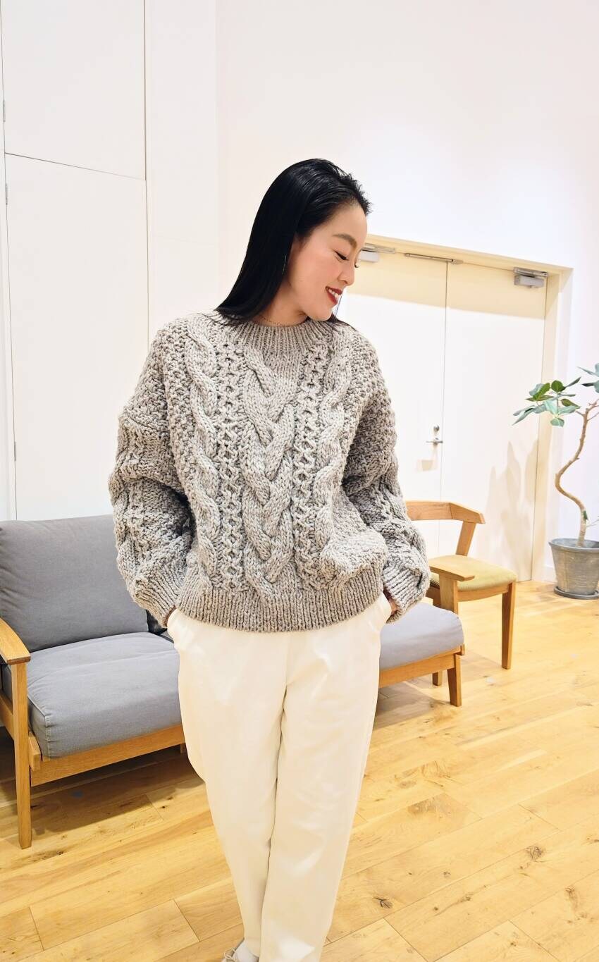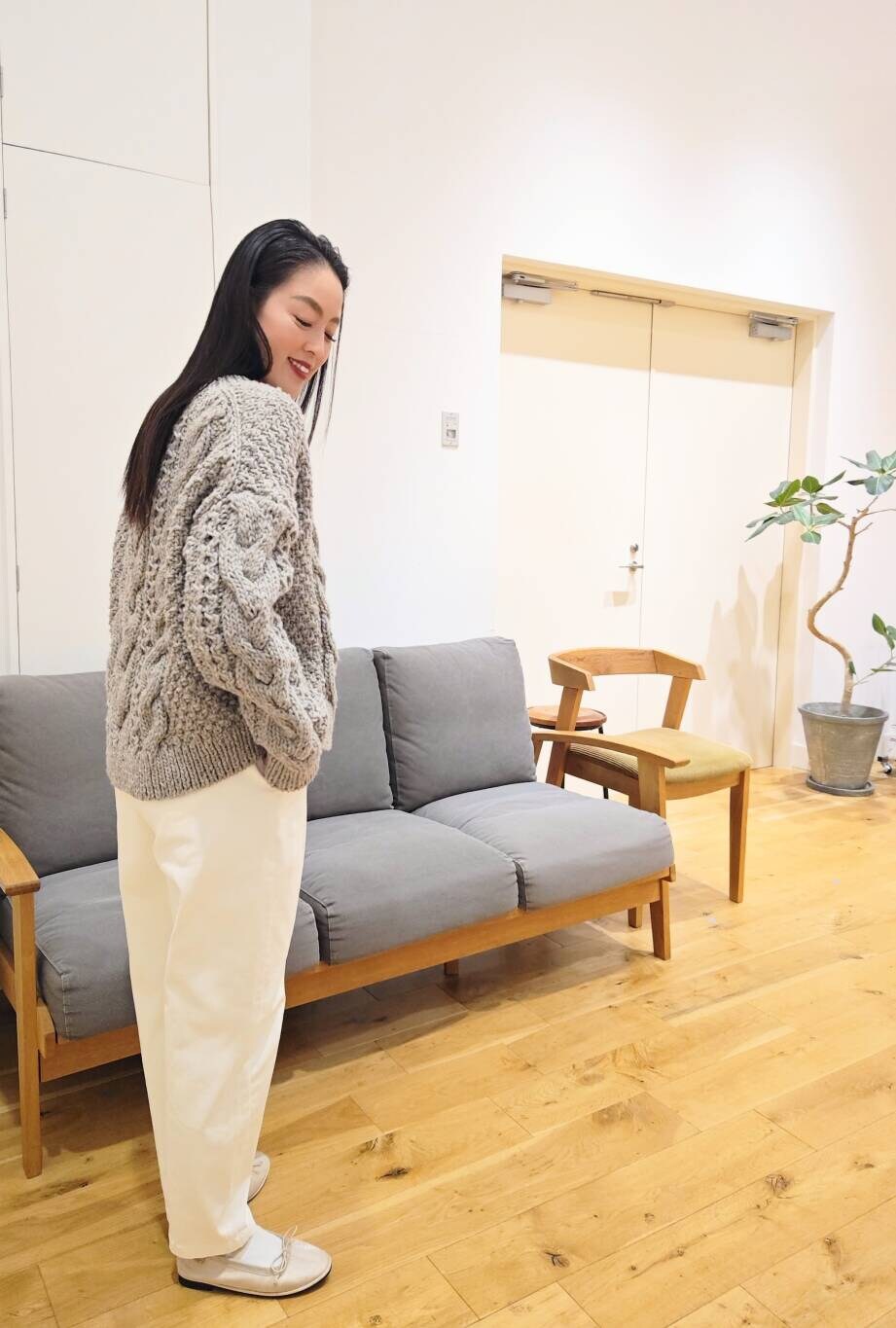 ざっくりとした感じがスカート合わせや、ワンピースの上から着ても◎