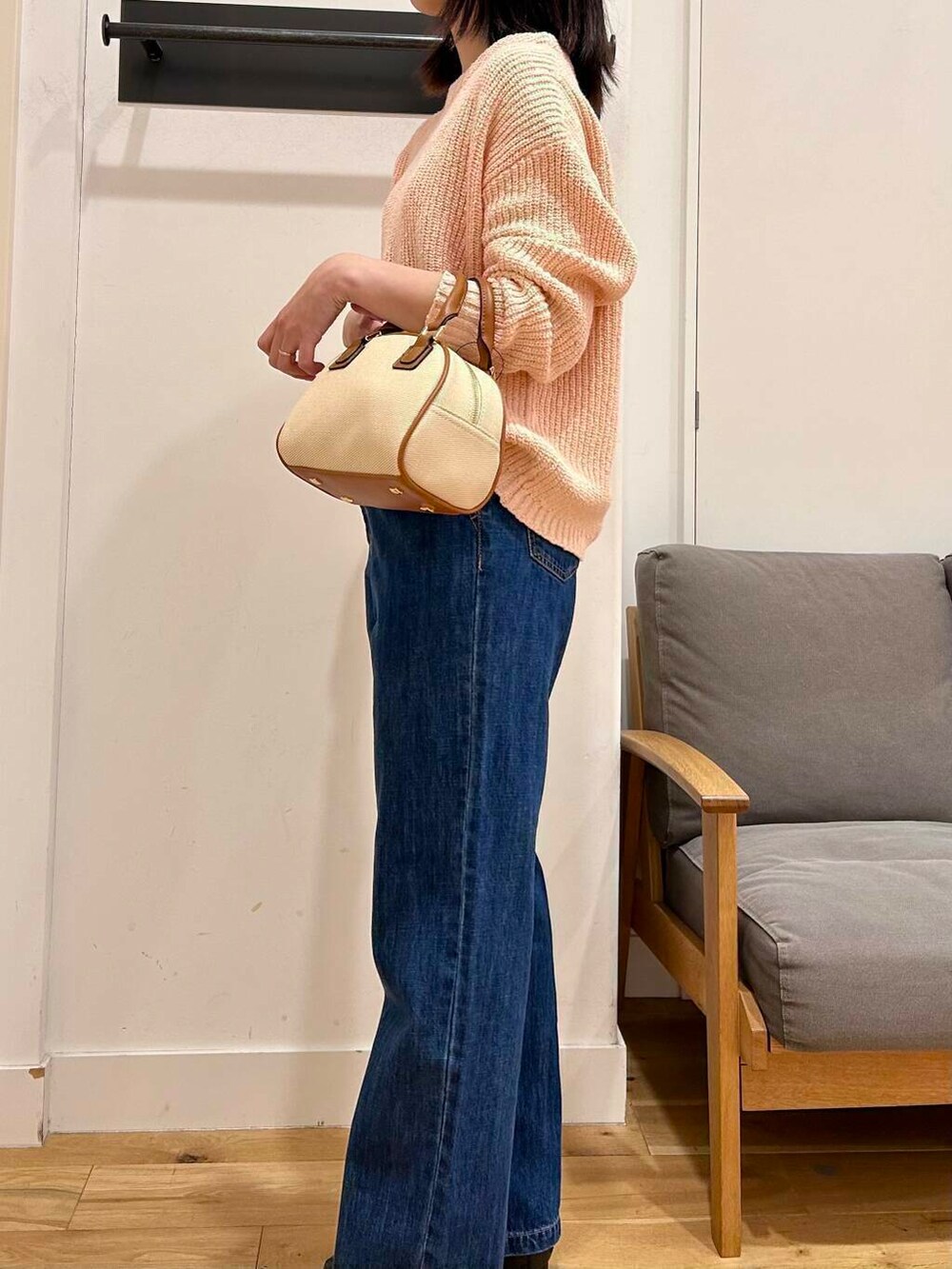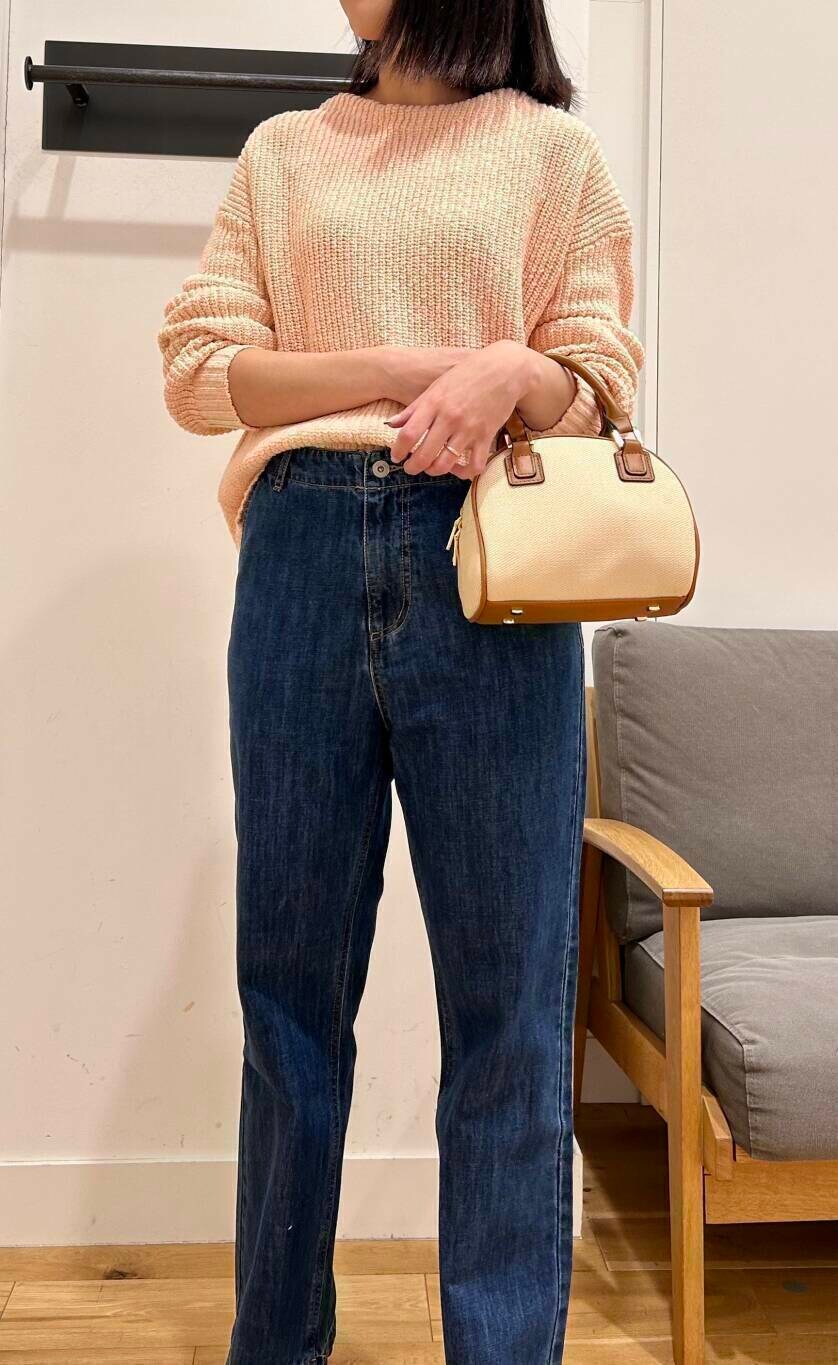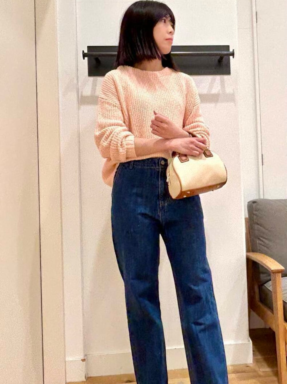 こちらのスラブKNITは、程よい抜け感があり、ざっくり編まれたニットで着膨れせず、いち早く春を取り入れやすいアイテムです◎