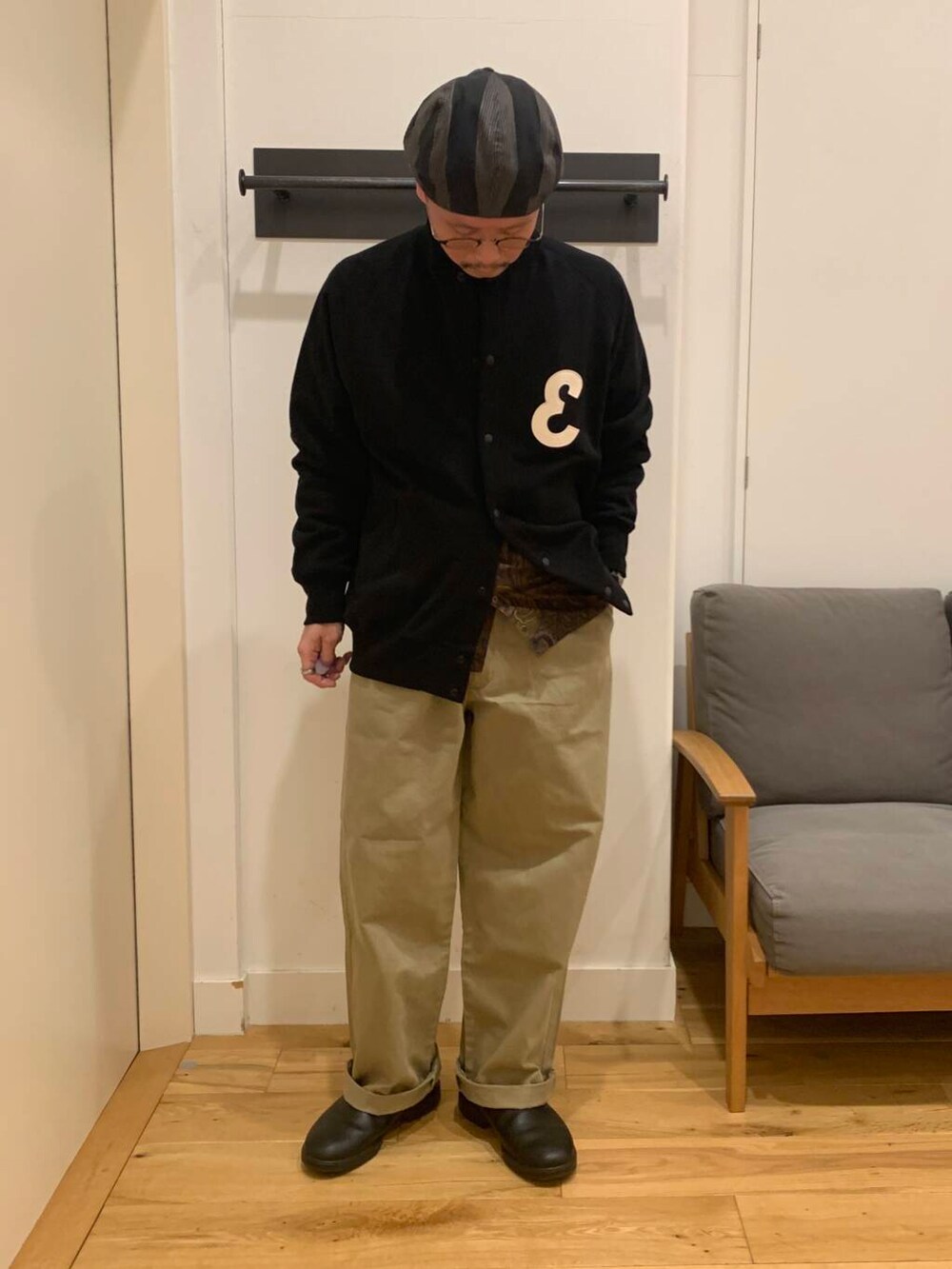 EKAL定番のロゴワッペンが入ったスウェットカーディガンをベースにコーディネートしました!