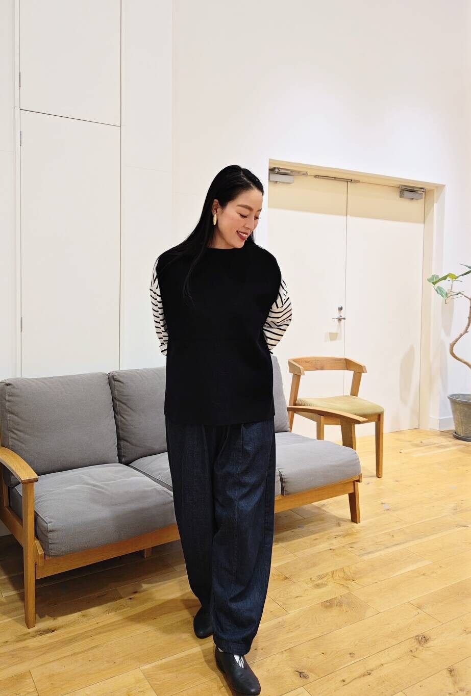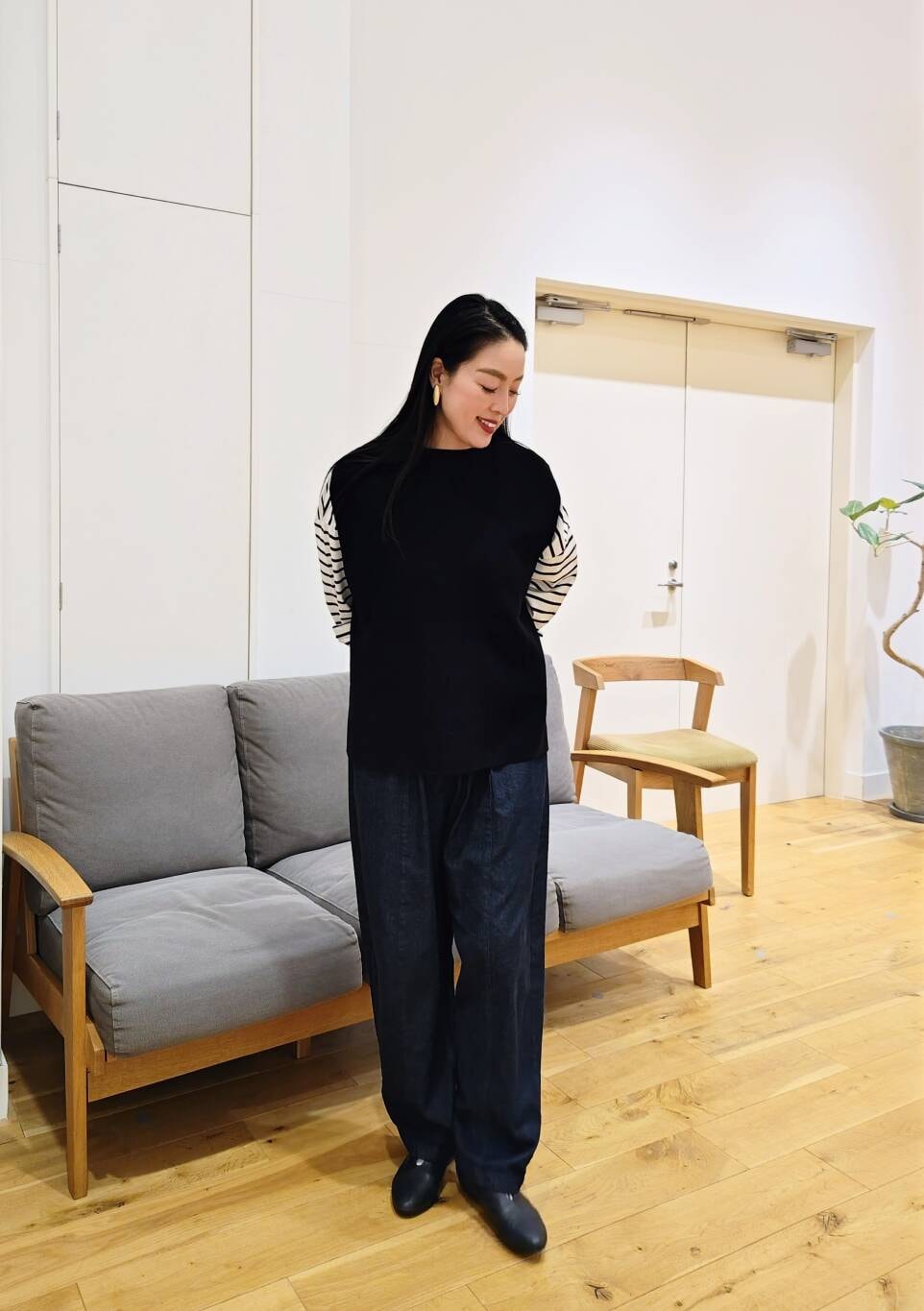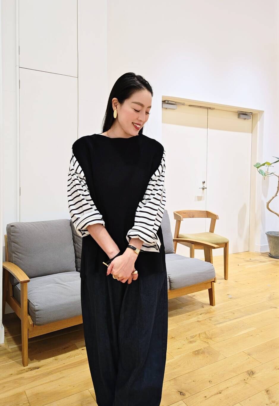太めの袖とボートネック、身幅もたっぷりあるデザインで可愛い◎
