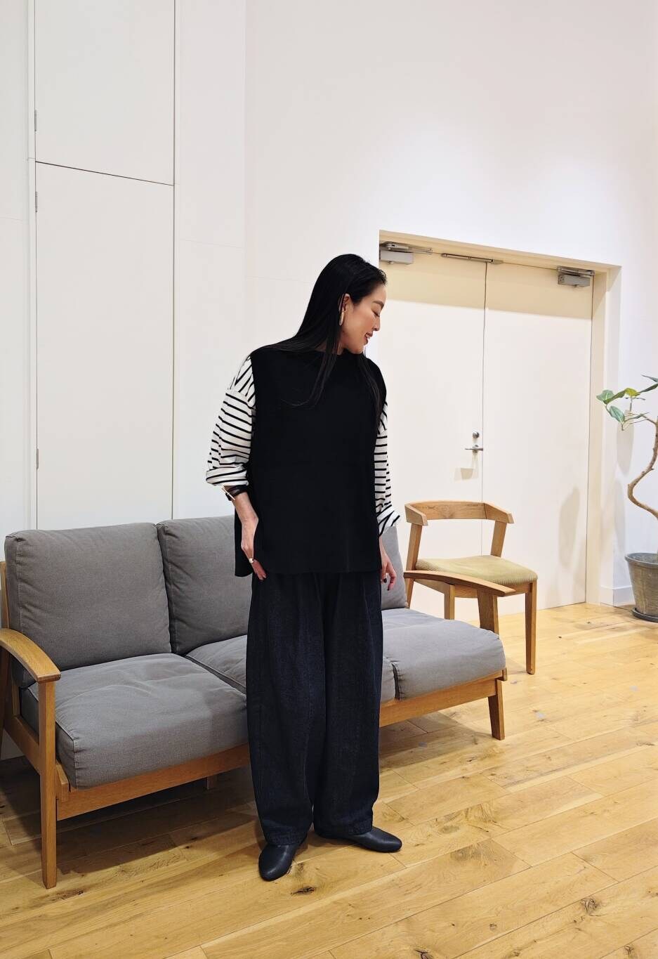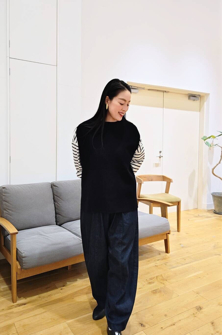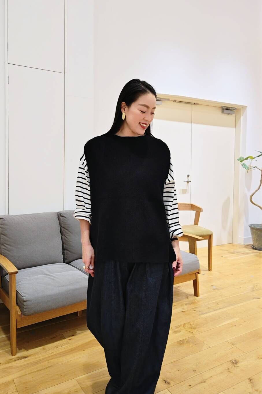 太めの袖とボートネック、身幅もたっぷりあるデザインで可愛い◎