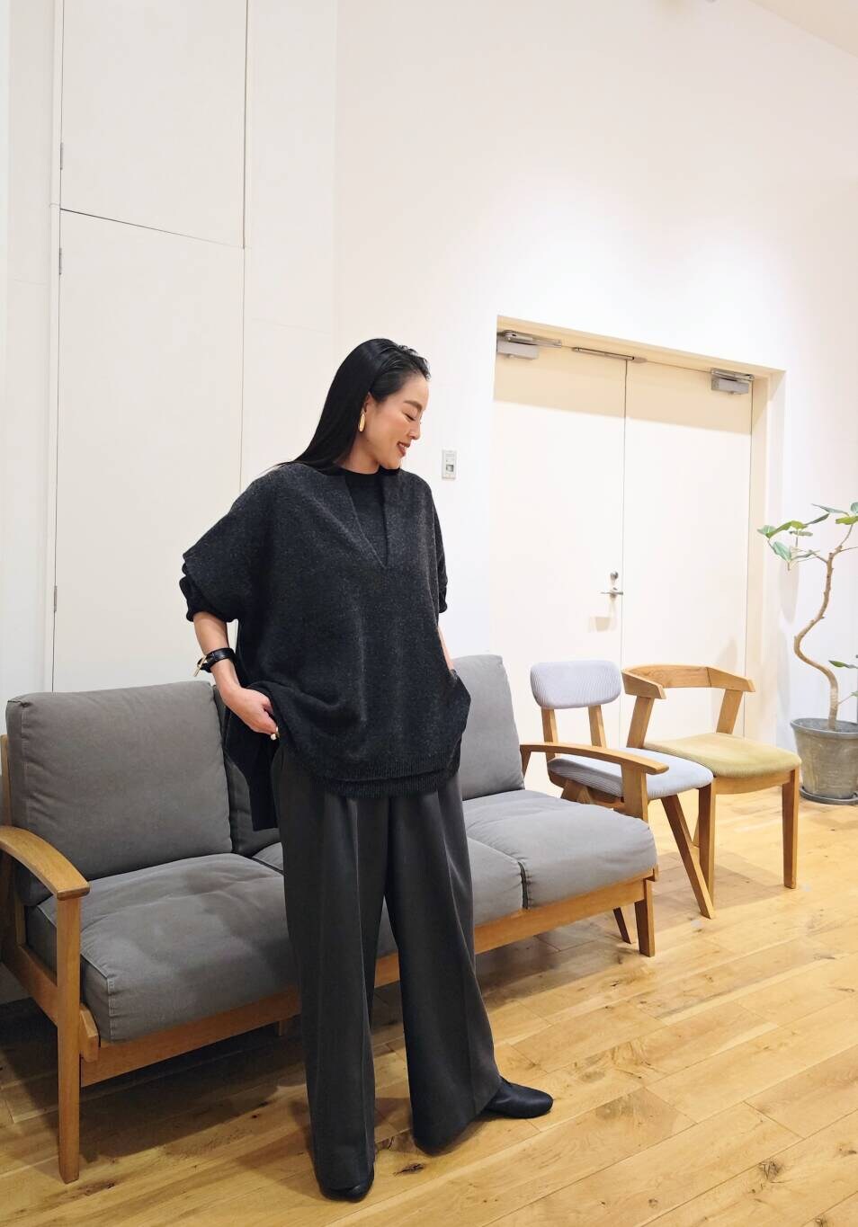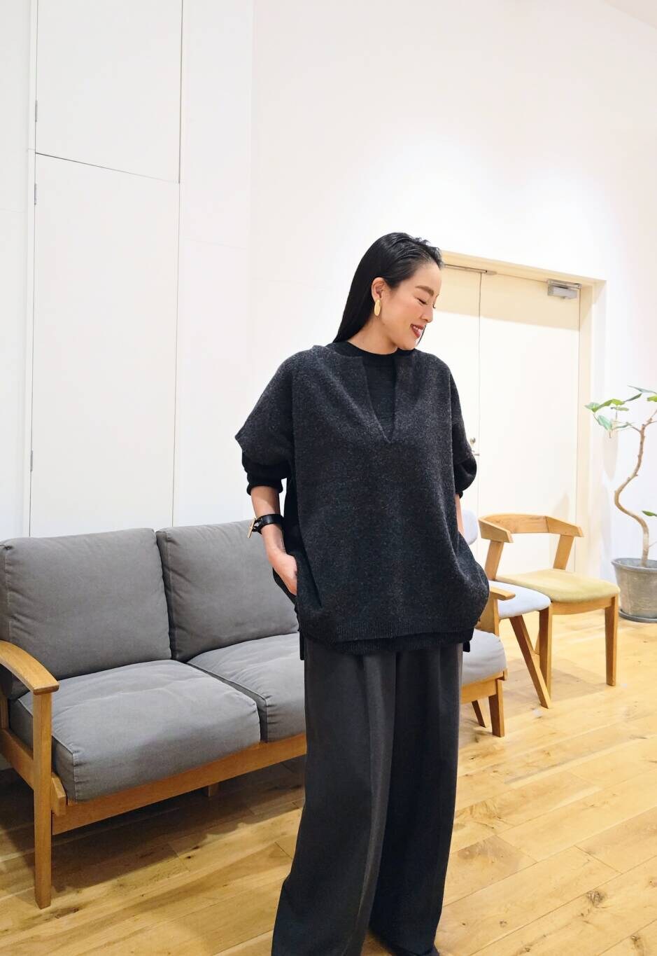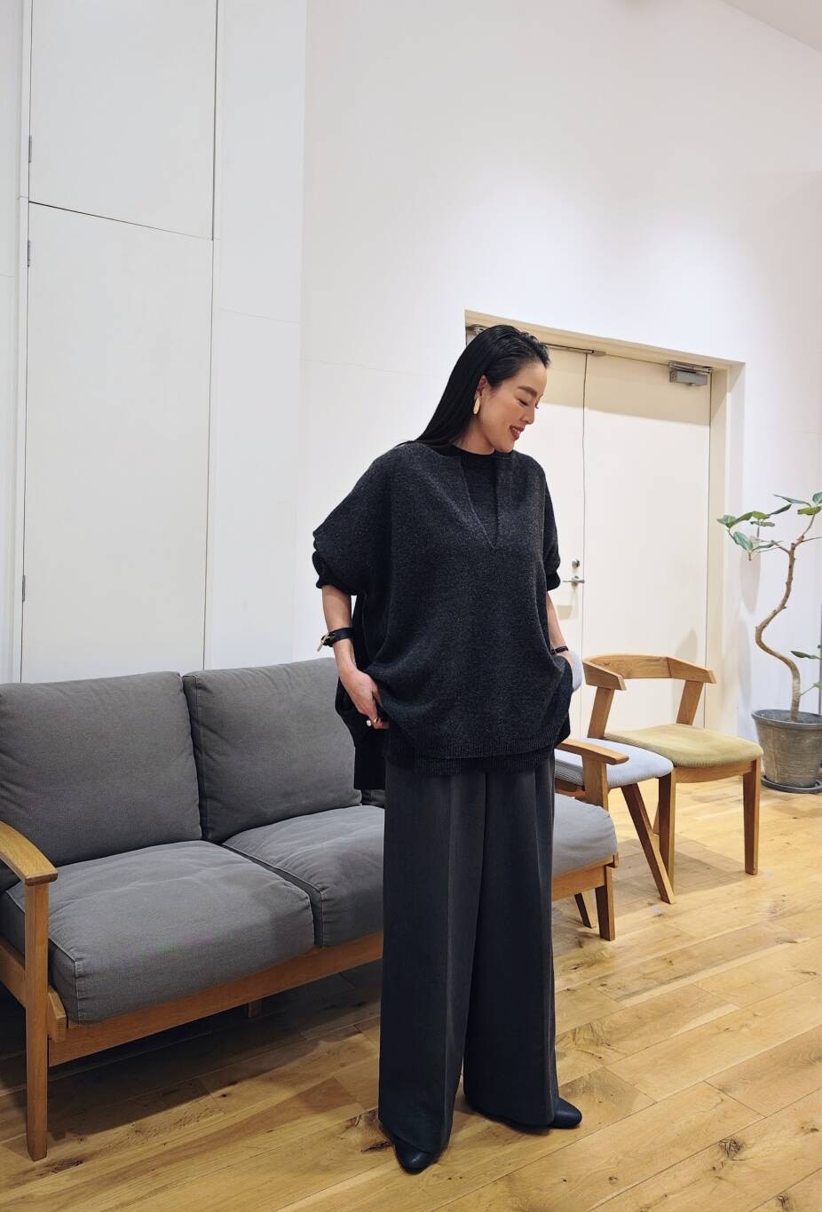 ワイドなシルエットですが落ち感がありすっきりした印象です。