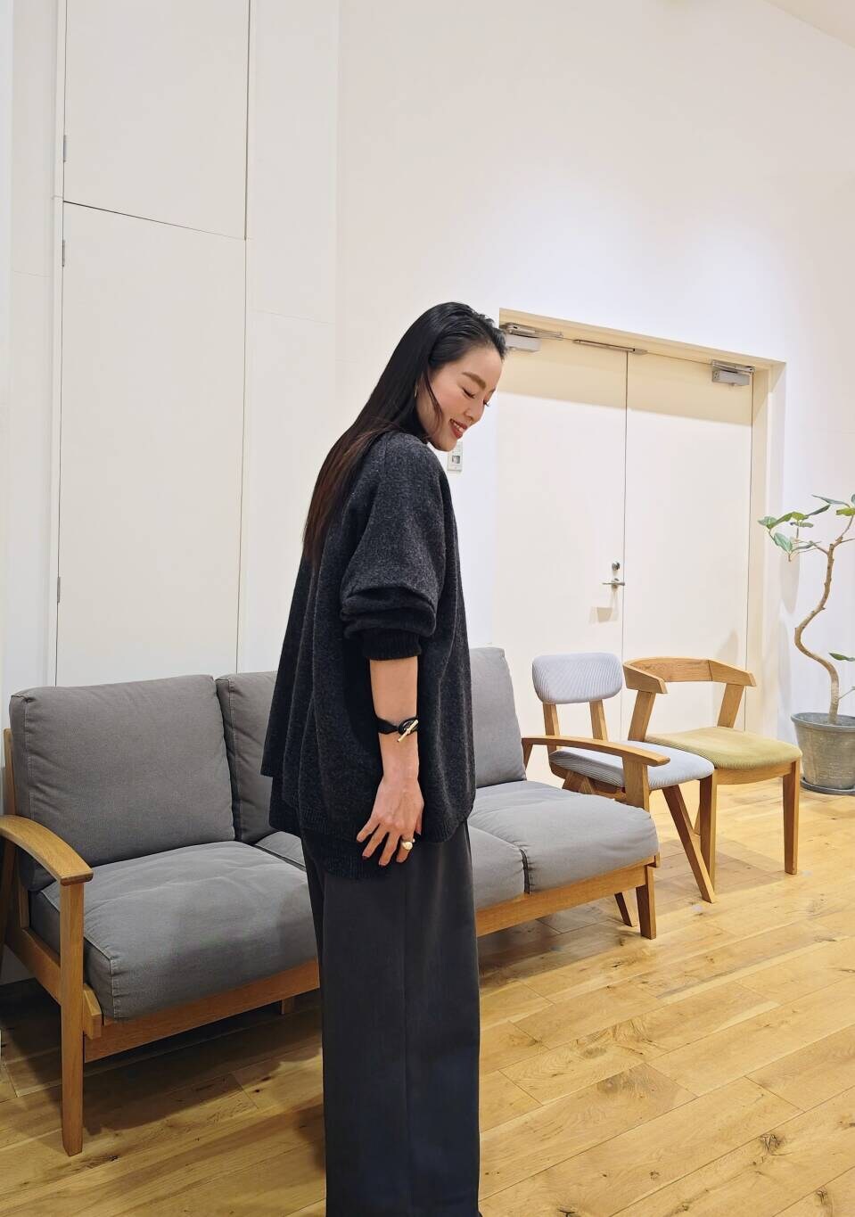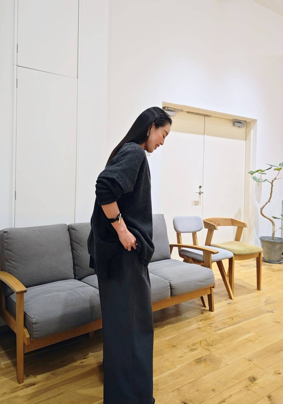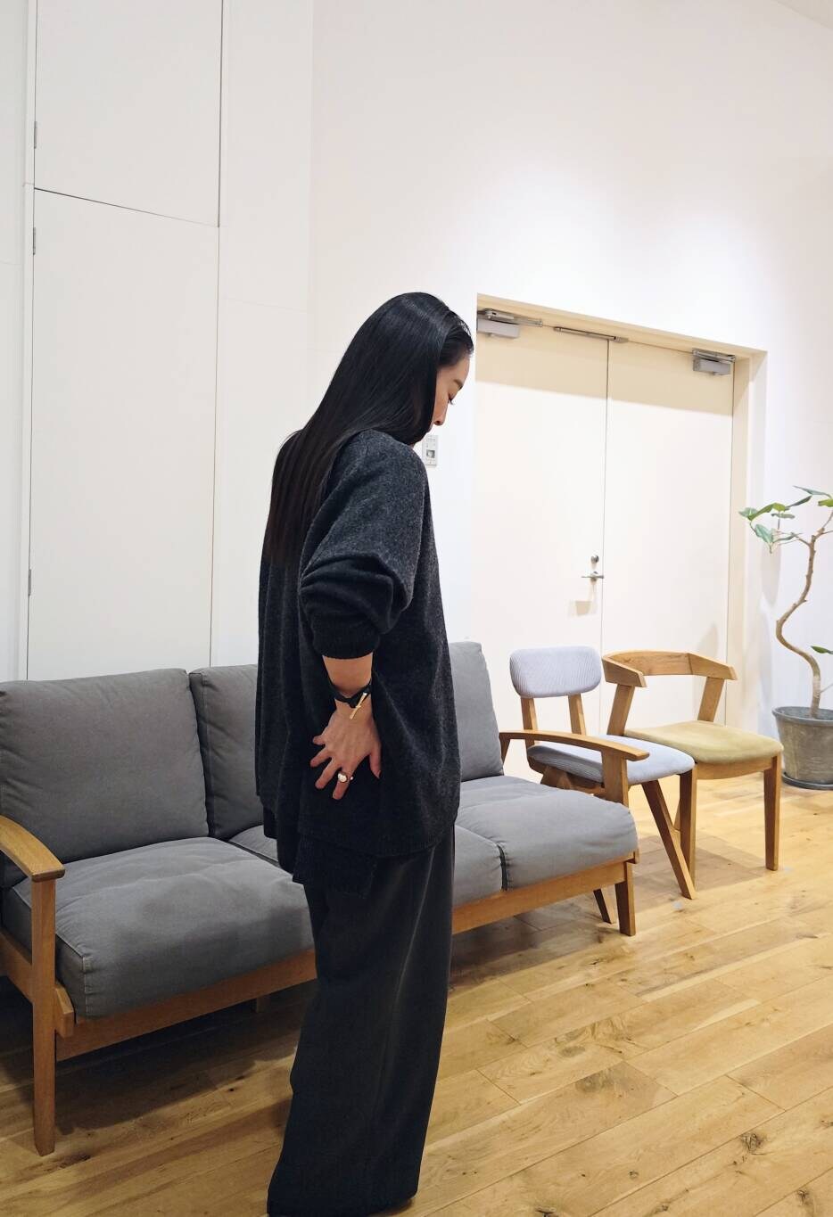 ワイドなシルエットですが落ち感がありすっきりした印象です。