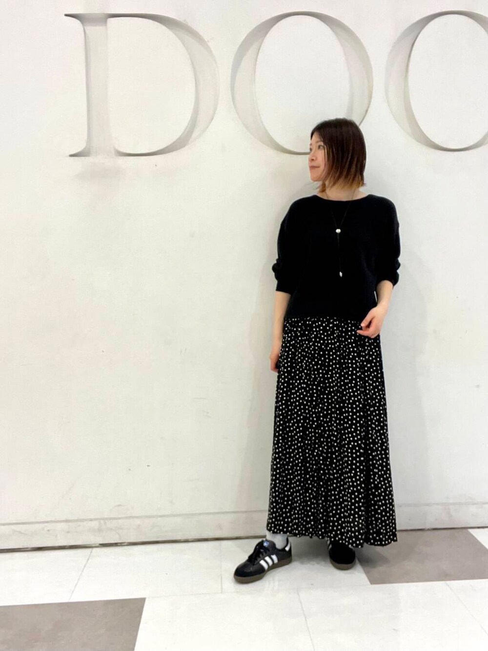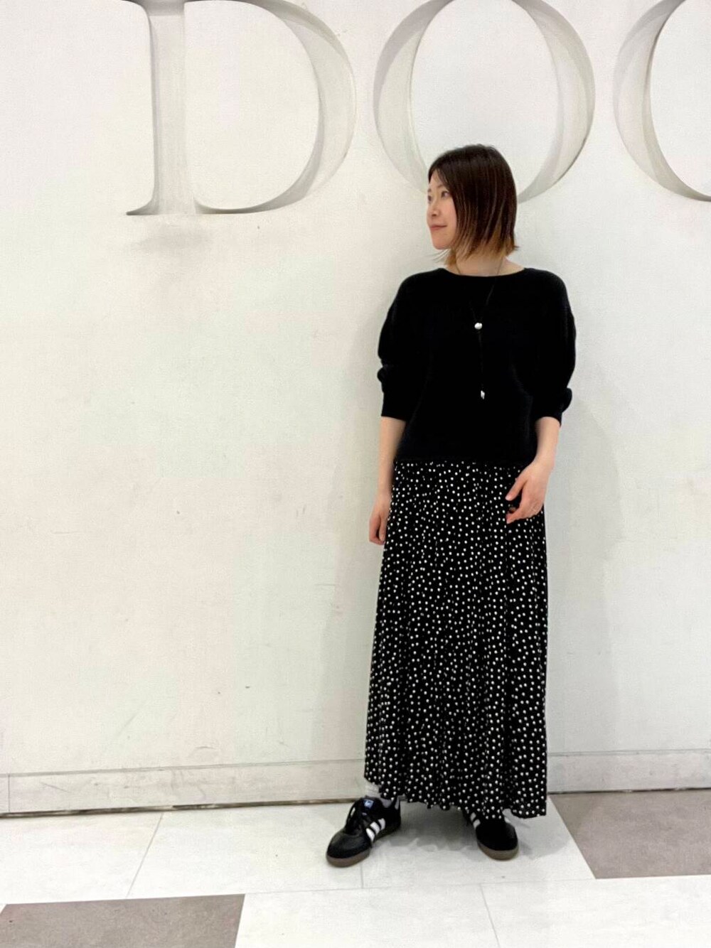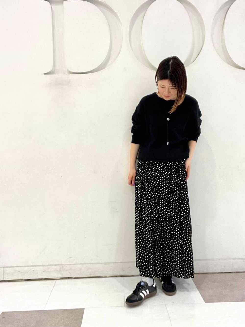 コットン素材のニットは春先に取り入れたい1枚です☘️ボートネックが首回りをすっきりと見せてくれ女性らしい印象に◎ぜひお試しくださいね。