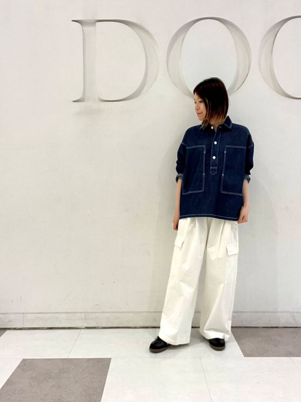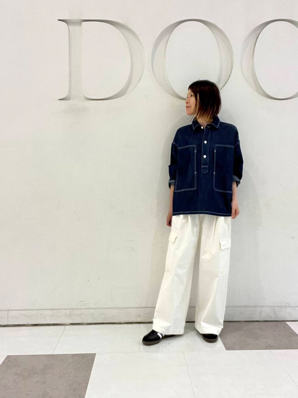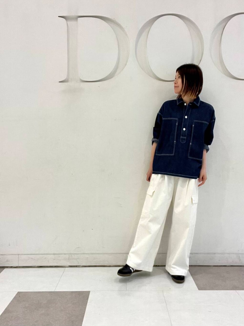 かぐれのデニムプルオーバーシャツはゆるっとオーバーサイズが可愛いです◎胸元のポケット、ステッチがポイントになります☘️肌触りも柔らかくて着やすいです、ぜひお試しくださいね。