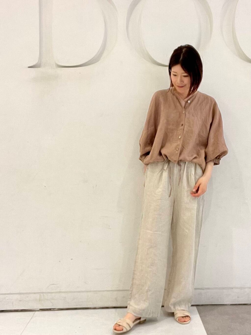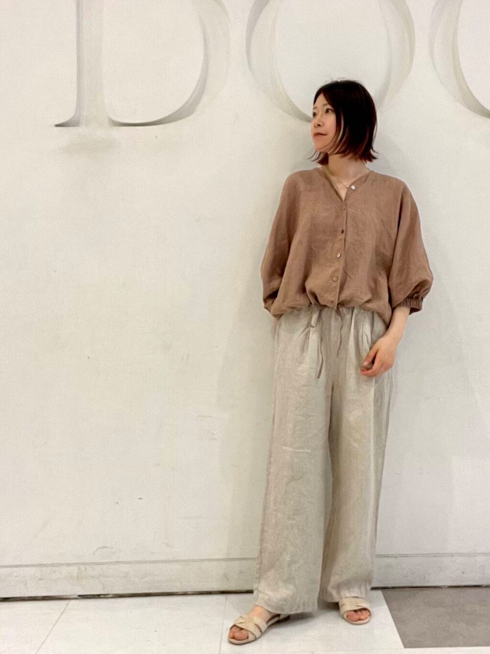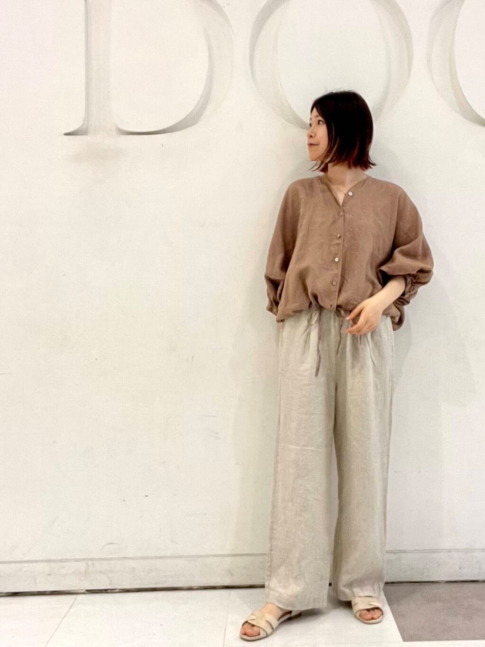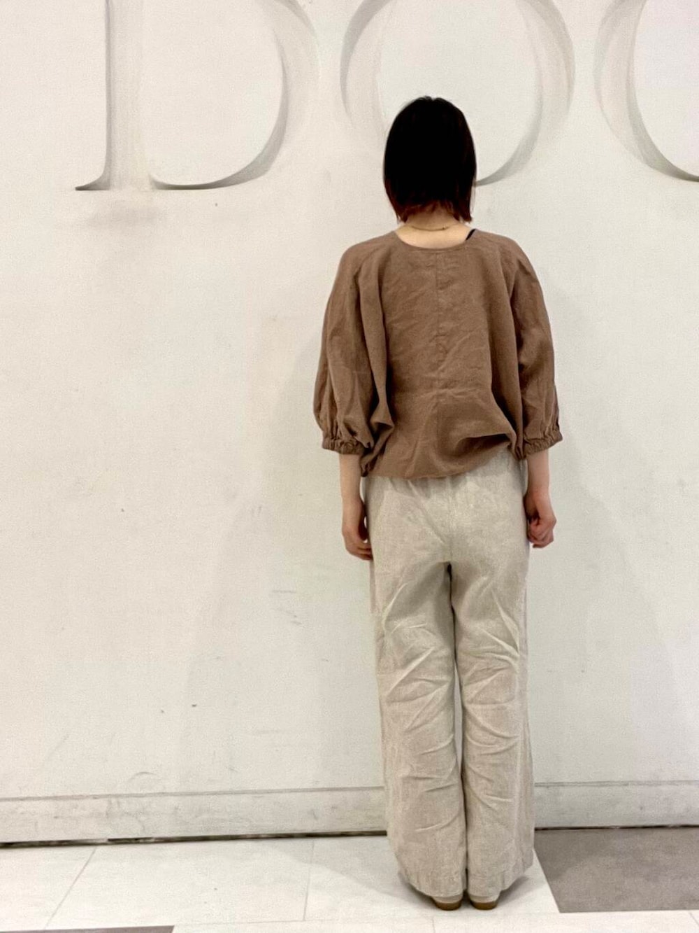 ボリュームのあるドルマンスリーブが可愛いリネン100%のブラウスです🌻浅めのVネックが顔周りをすっきりと見せてくれます。短めな着丈なのでボリュームのあるボトムスと相性が良いです◎