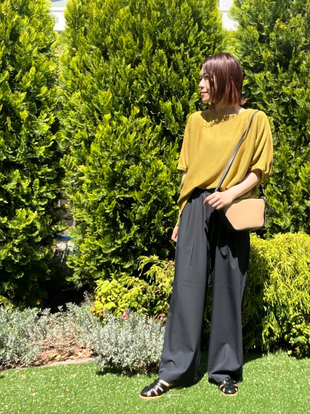さらっとした肌触りで暑い季節でも涼しく履いていただけるパンツです🌻軽くて履き心地が良くオフィスからカジュアルまで幅広いコーディネートに活躍間違いなしです☝🏻サイズは2サイズでMを着用しています!