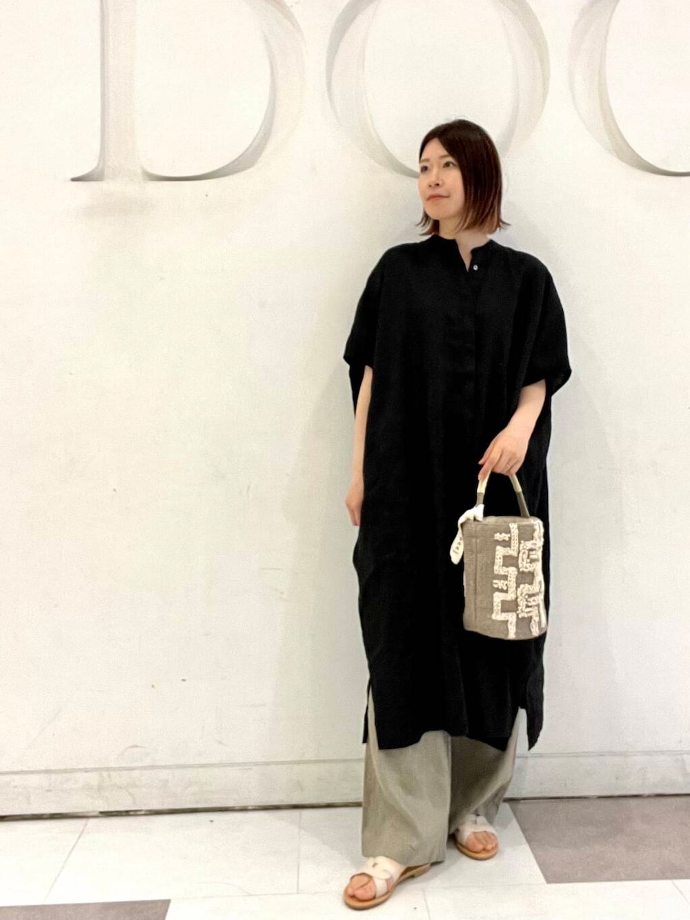 リネン100%でゆとりのあるシルエットが通気性も良く暑い夏にピッタリなワンピースです◎163cmで膝下の着丈になります。