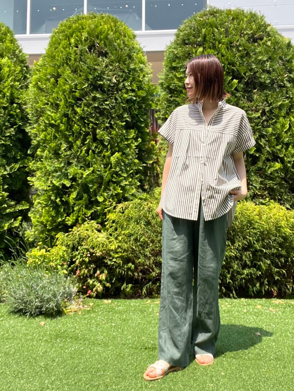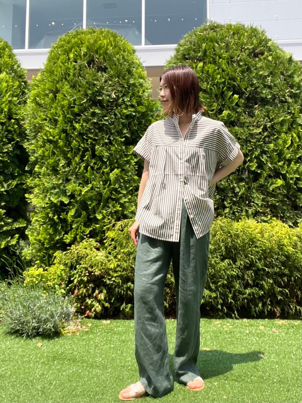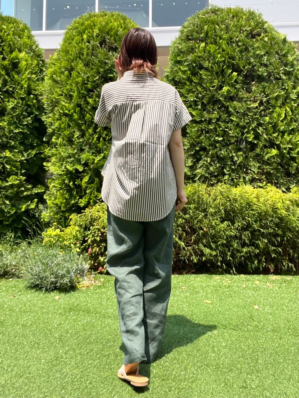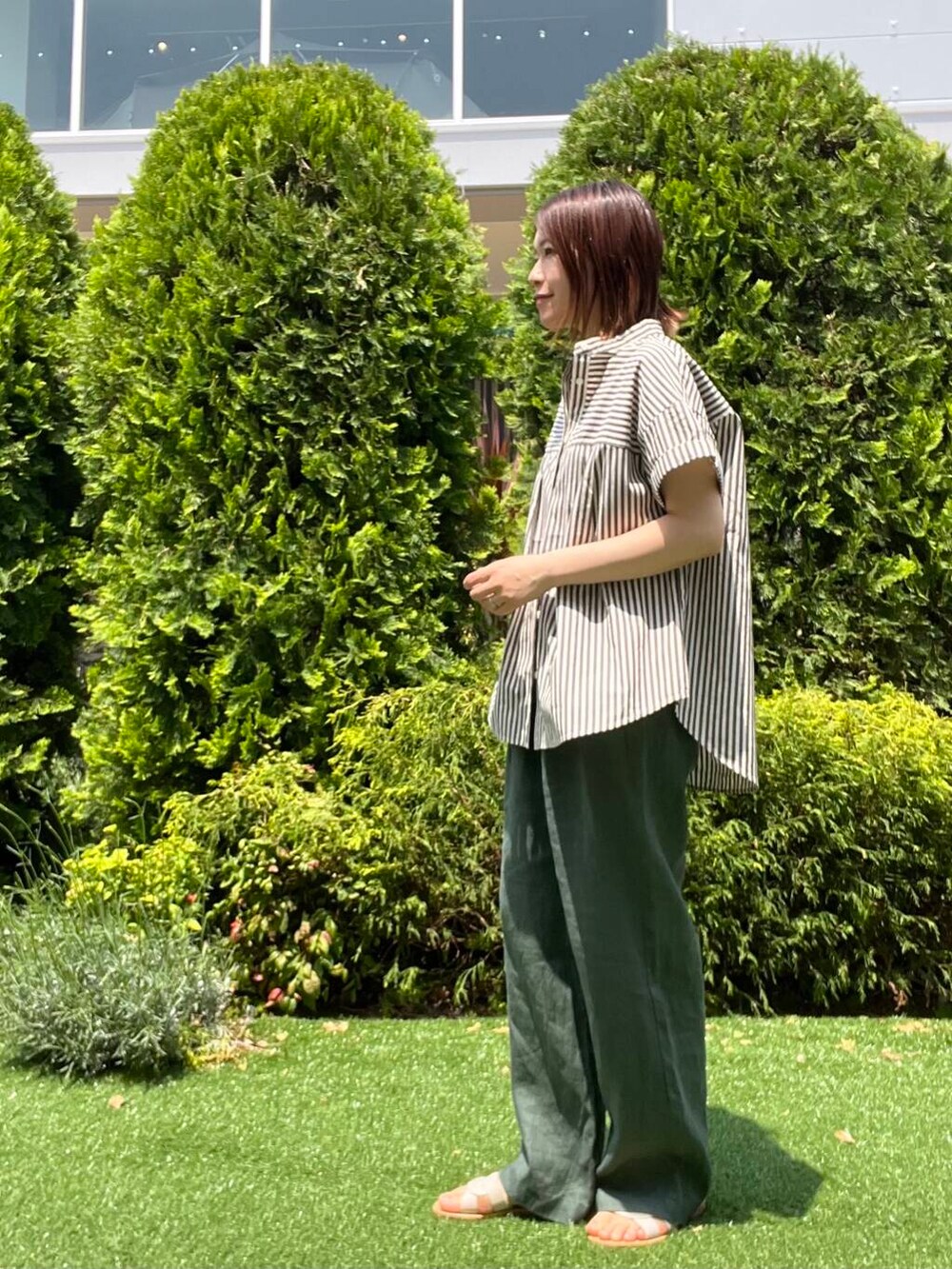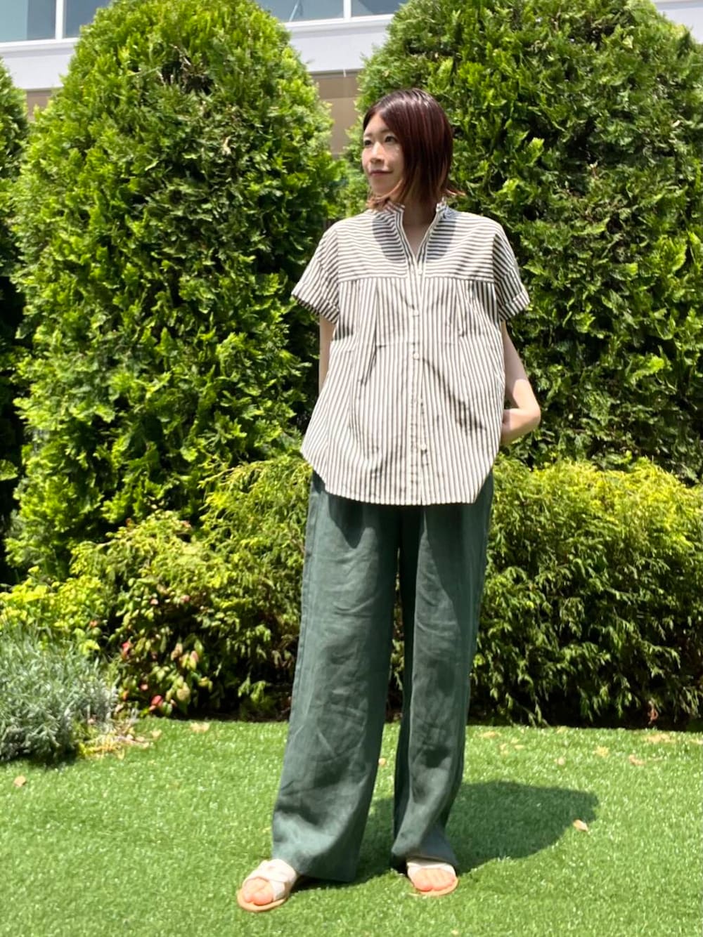 膨らみのあるシルエットが女性らしいストライプシャツですゆったりとしたシルエットで通気性が良く涼しいです!ロールアップしてある袖が腕をスッキリ見せてくれ、お尻が隠れる着丈も安心感があります◎