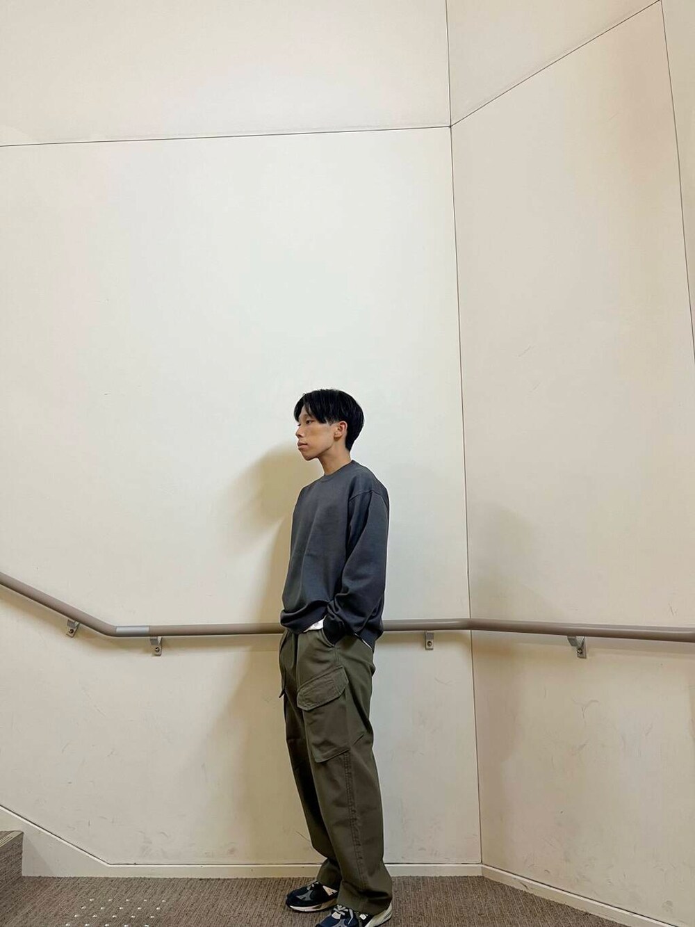200日ニットのクルーネックプルオーバーとF&Sのカーゴパンツ合わせてみました!
