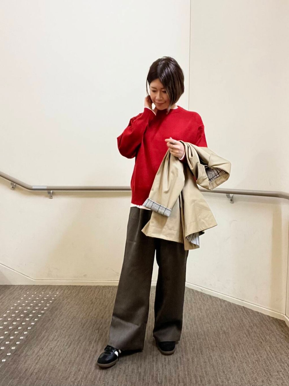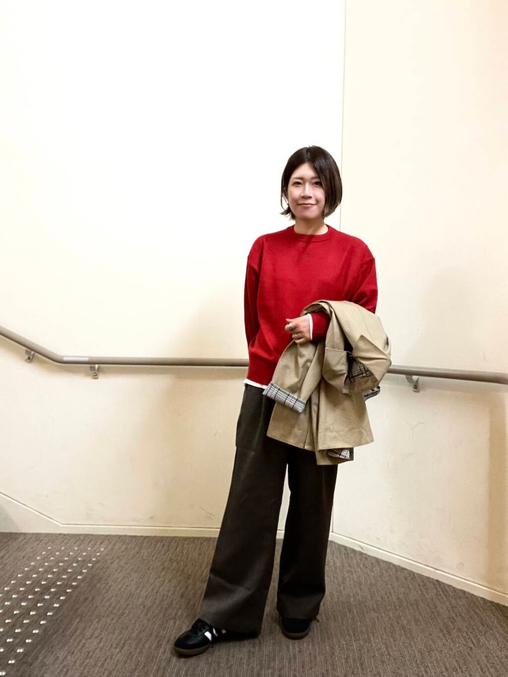 スウェットのような感覚で気軽に着れるのが嬉しいです。少しゆったりしたサイズ感になっています◎