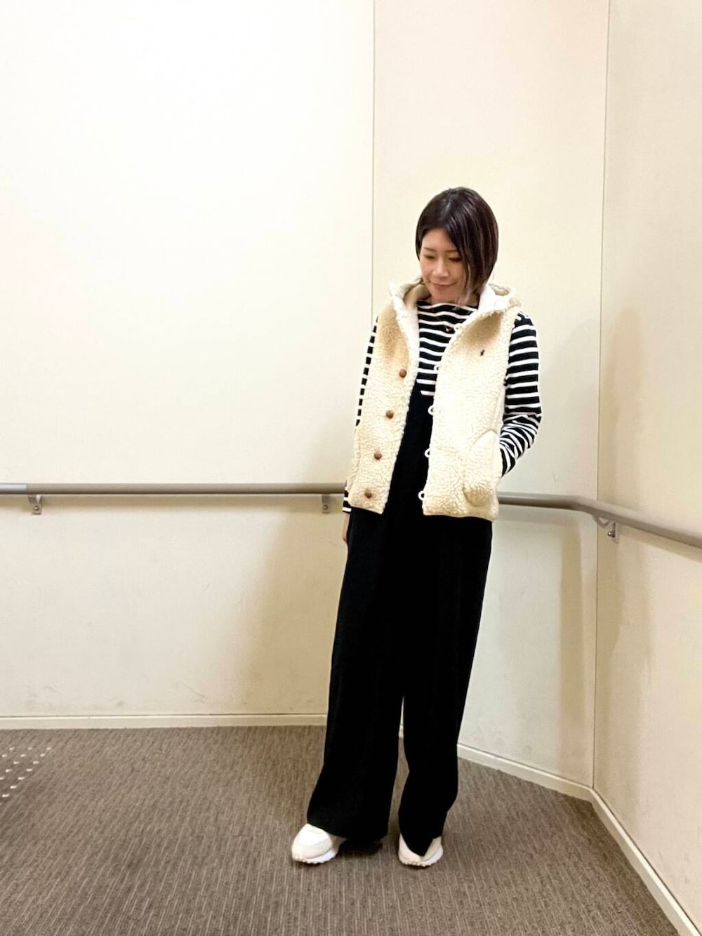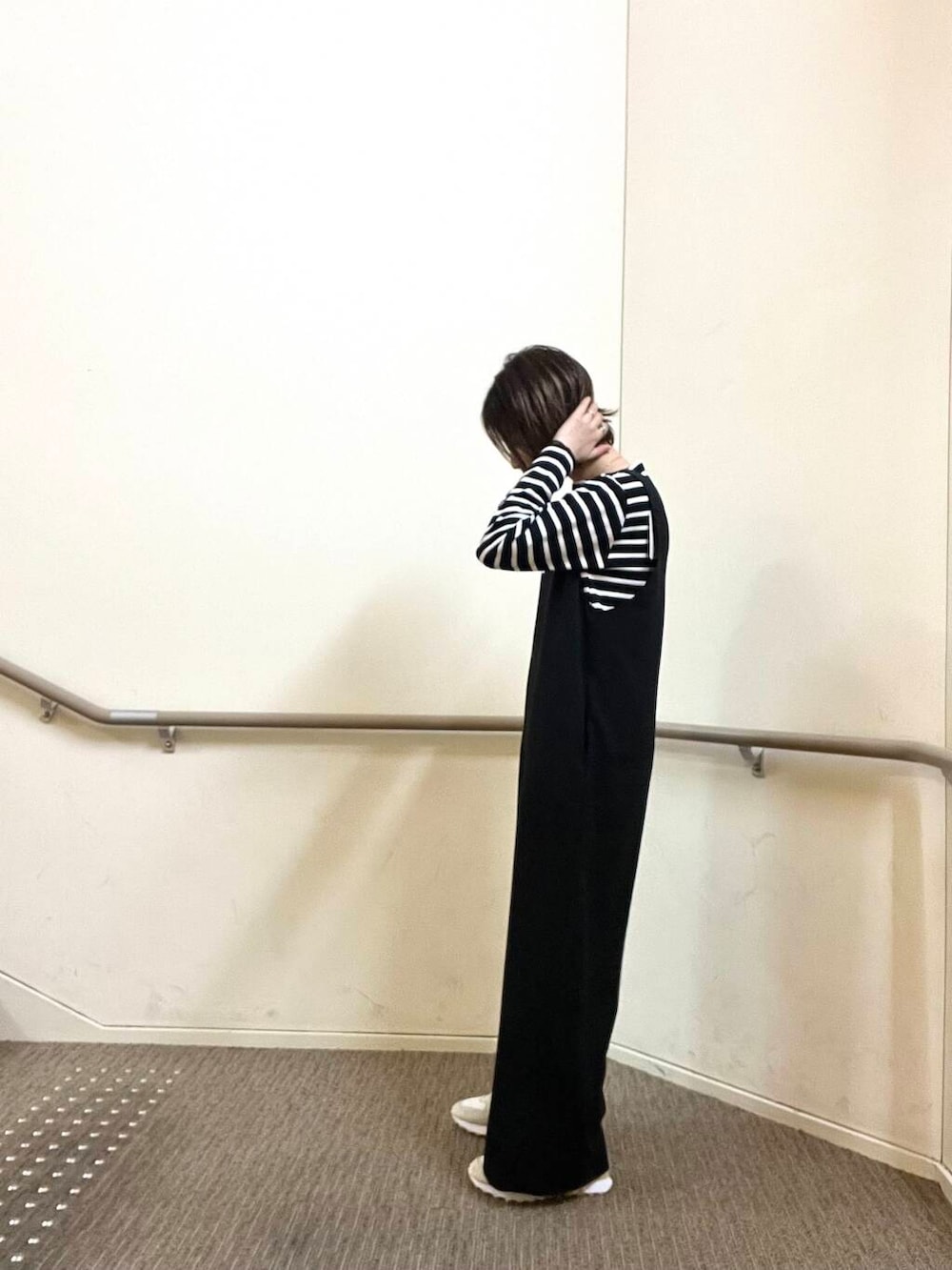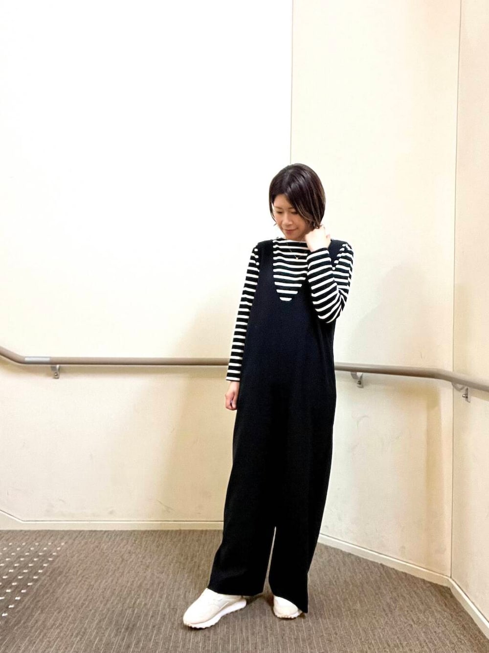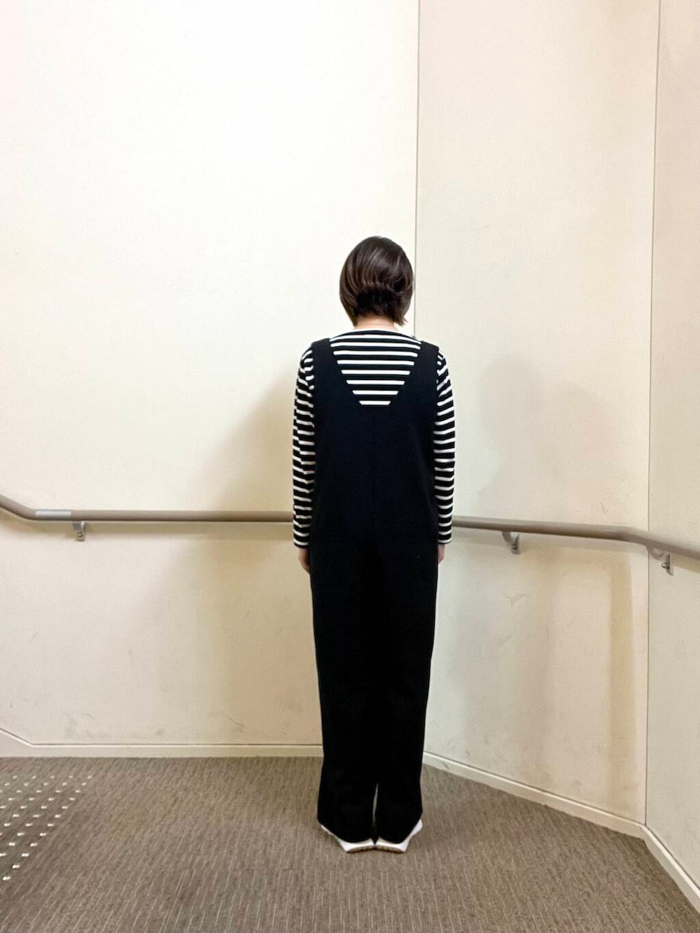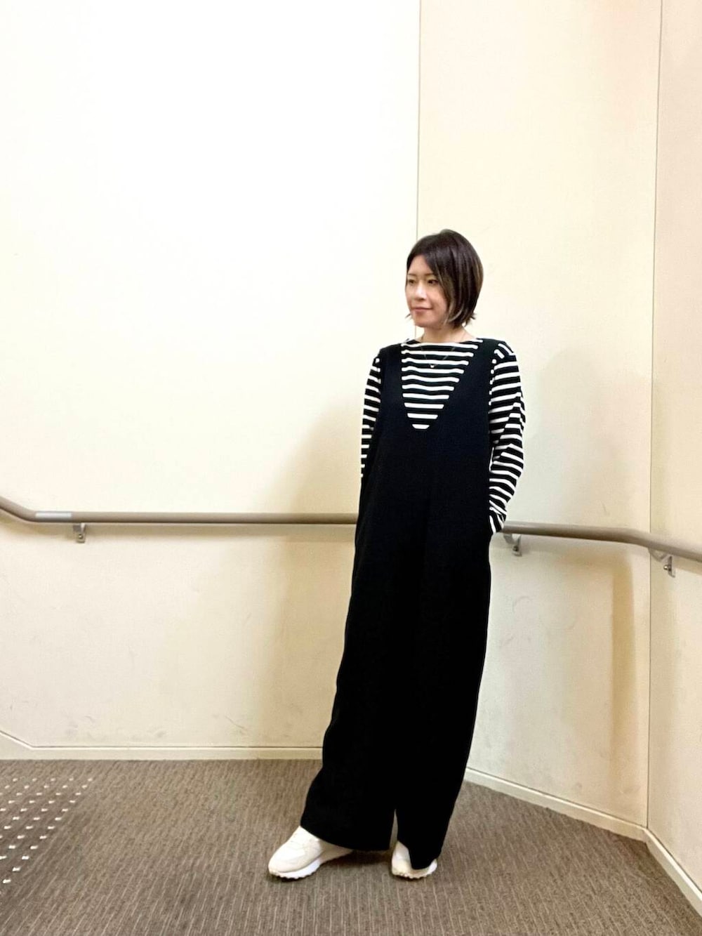 ボディラインを拾わないゆったりとしたサイズ感のサロペットですがすっきりと見える優れ物です◎前後が大きくひらいているので中身に合わせるTシャツやブラウスで印象も変わり使い回しがききそうです!