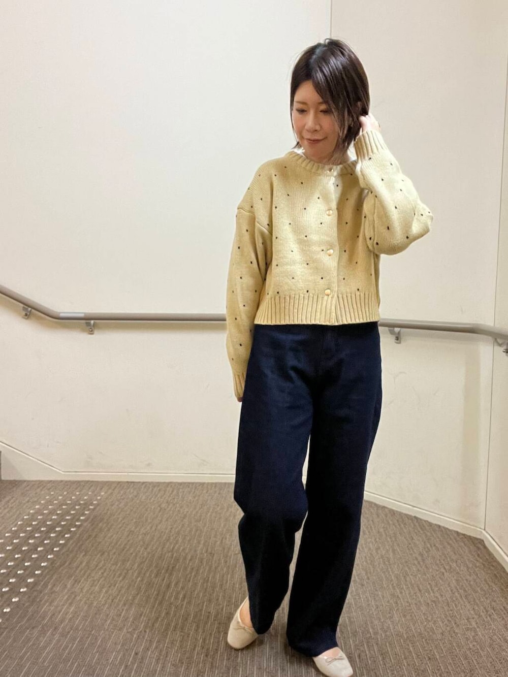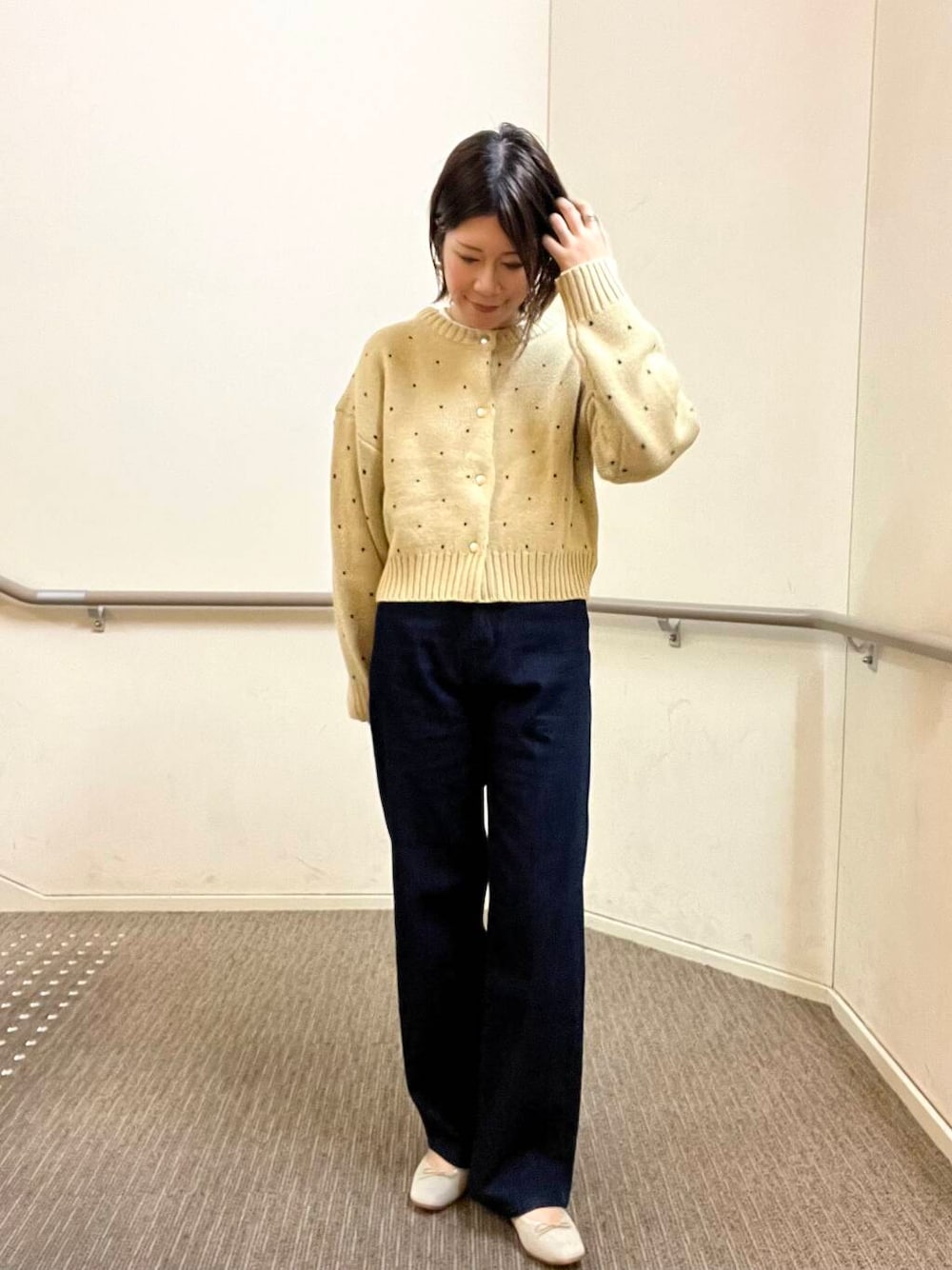 小さなドット柄がポイントのニットカーディガンです👏🏻よく見るとハート柄にも見えるのが可愛いです!膨らみのあるシルエットが女性らしく着れます◎ぜひお試しくださいね🍂