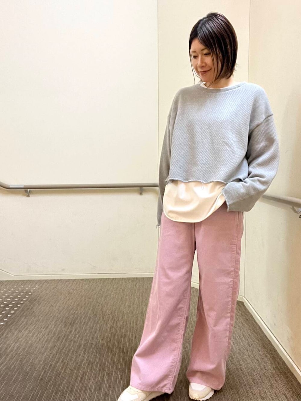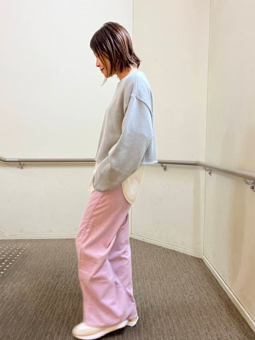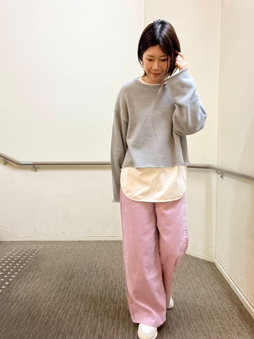 袖口や裾の切りっぱなしのデザインが可愛いトップスはスウェットのような感覚で着やすいです◎すっきりとしたショート丈なのでワイドパンツやスカートと相性が良いです👏🏻