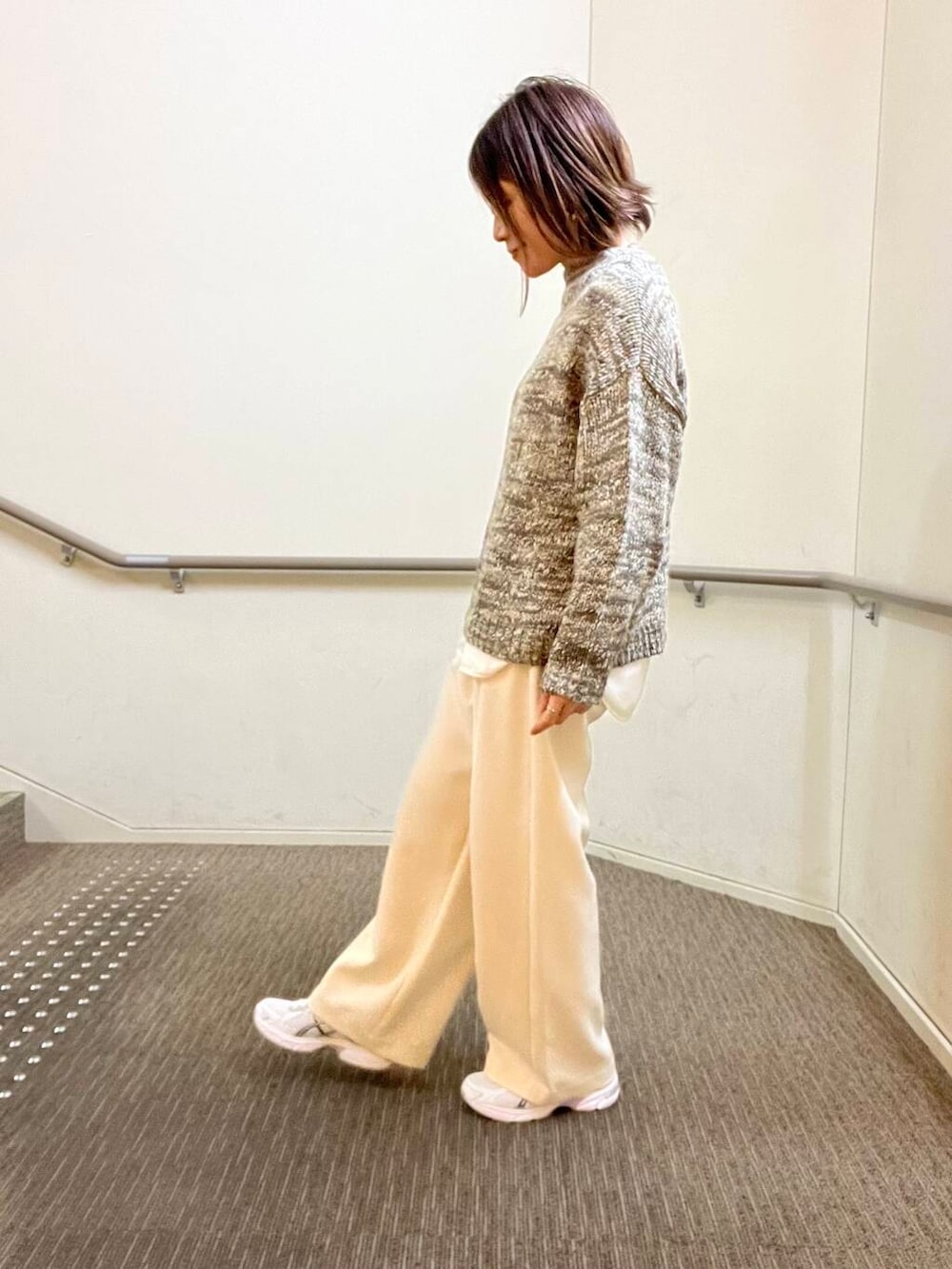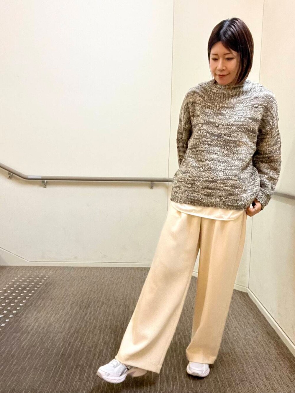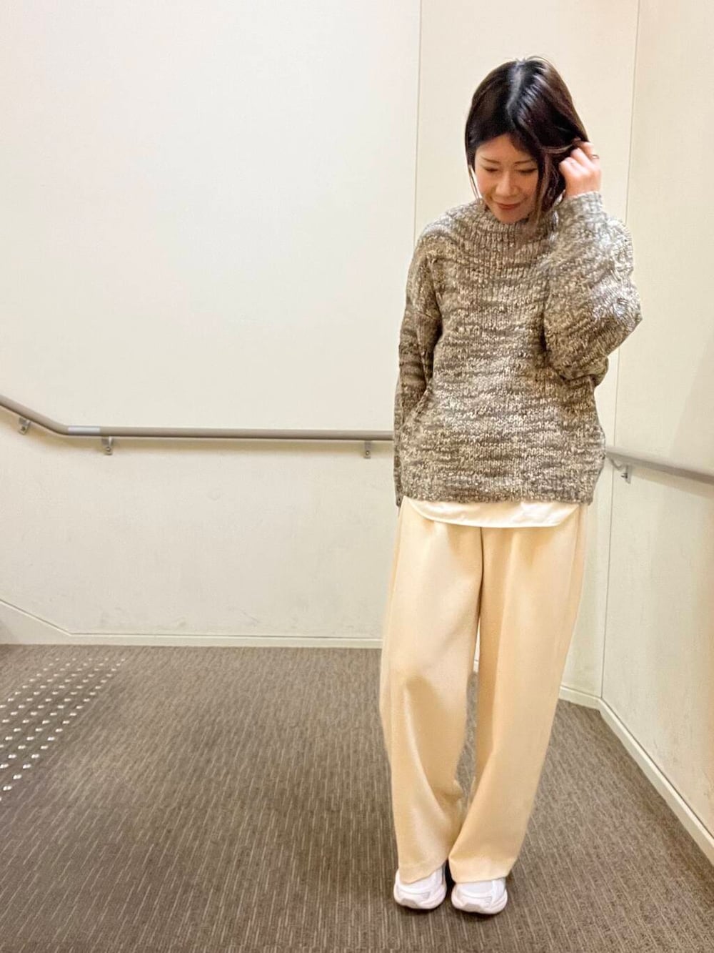 ミックスカラーが可愛いニットは肩が落ちたルーズなシルエットです。肌触りが柔らかく着やすいのでオススメです!ぜひお試しくださいね🍂
