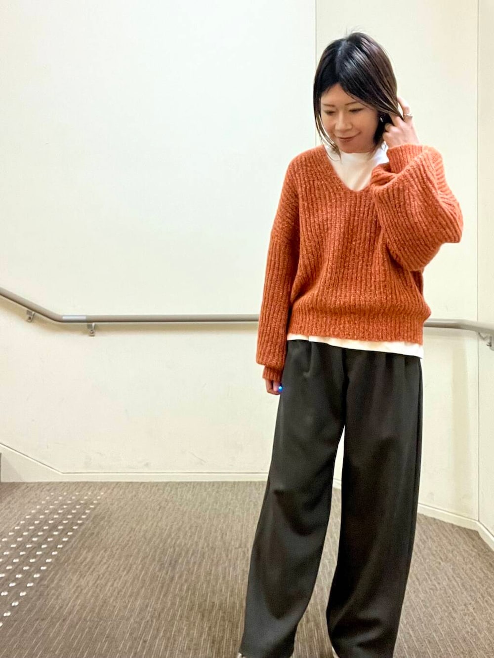 本日のご紹介はたっぷりとしたボリュームスリーブが可愛いニットです🧶深めのVネックで顔周りをすっきりと見せてくれます◎ふんわりとしたシルエットが女性らしくオススメです。ぜひお試しくださいね🧣