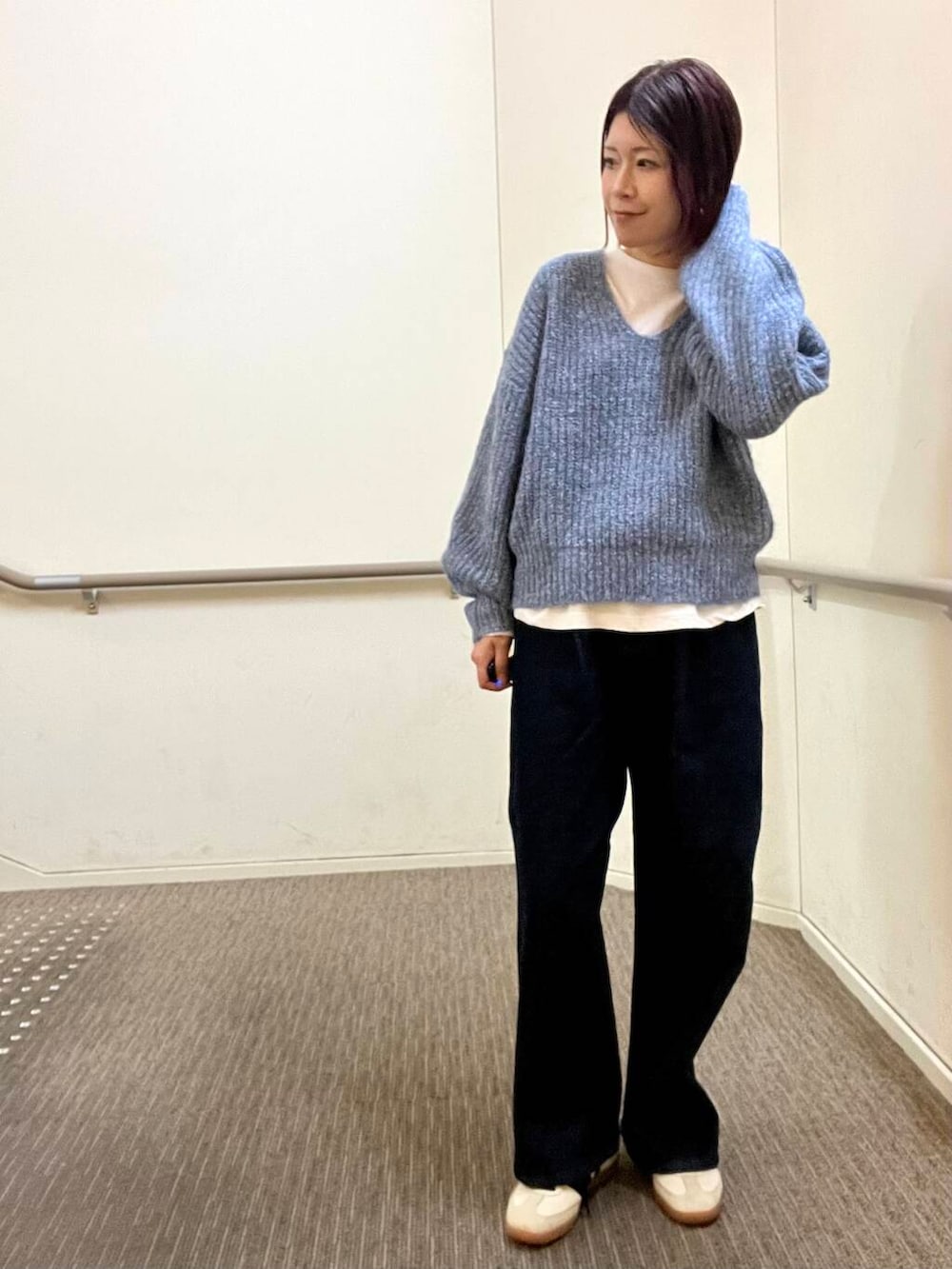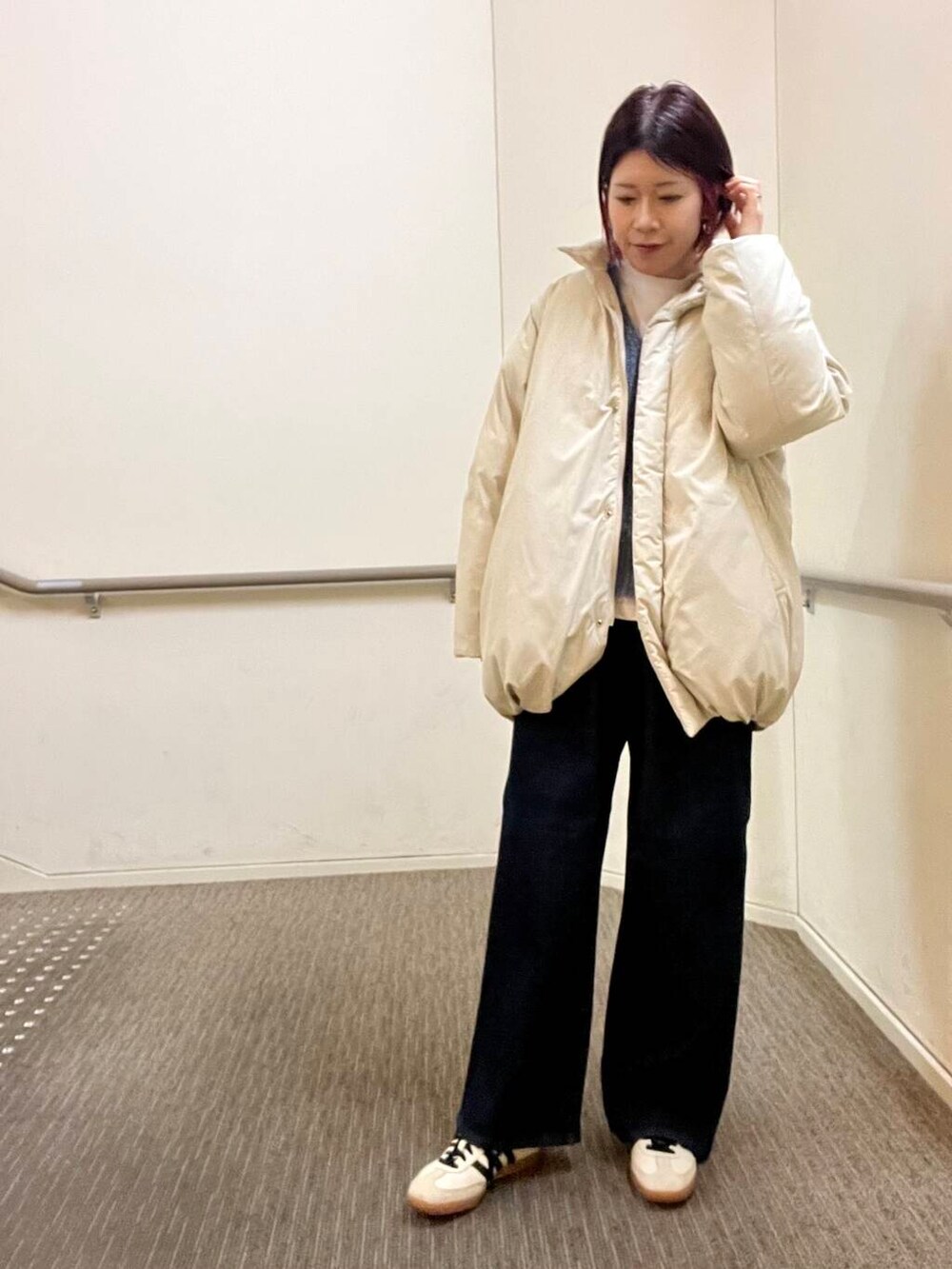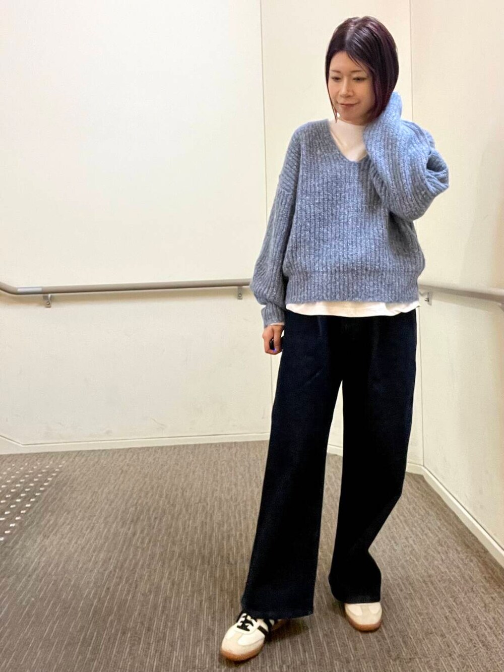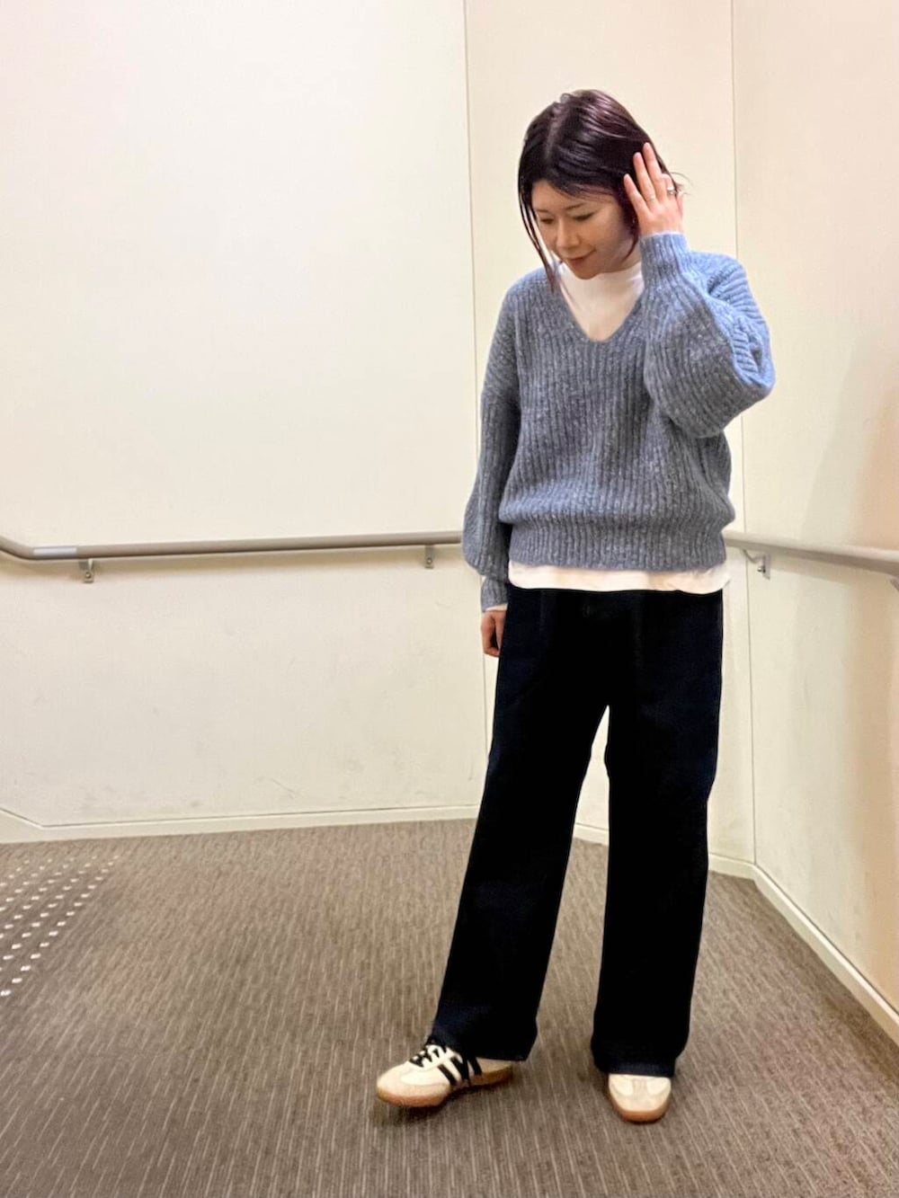 着用しているデニムは裏起毛になっているのでとても暖かくはいていただけます◎ストレッチが効いているため動きやすくノンストレスではけるのもポイントです👏🏻ぜひお試しくださいね🧣