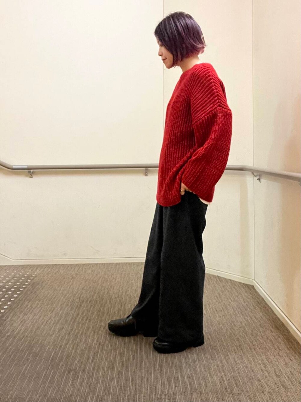 オーバーサイズが可愛いニットは柔らかい肌触りで着心地が良いです🧶袖にボリュームがあって1枚で着ても可愛いアイテムです。ぜひお試しくださいね🧣