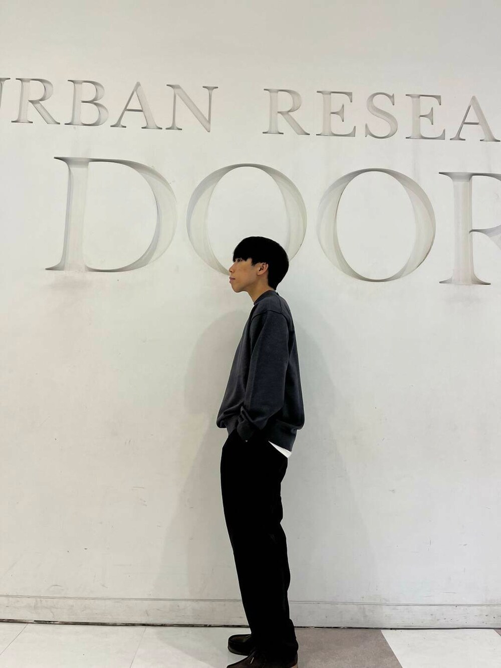 DOORSオリジナルの機能素材「UR TECH 200日ニット」を使用したモックネックネックニット着用しております。