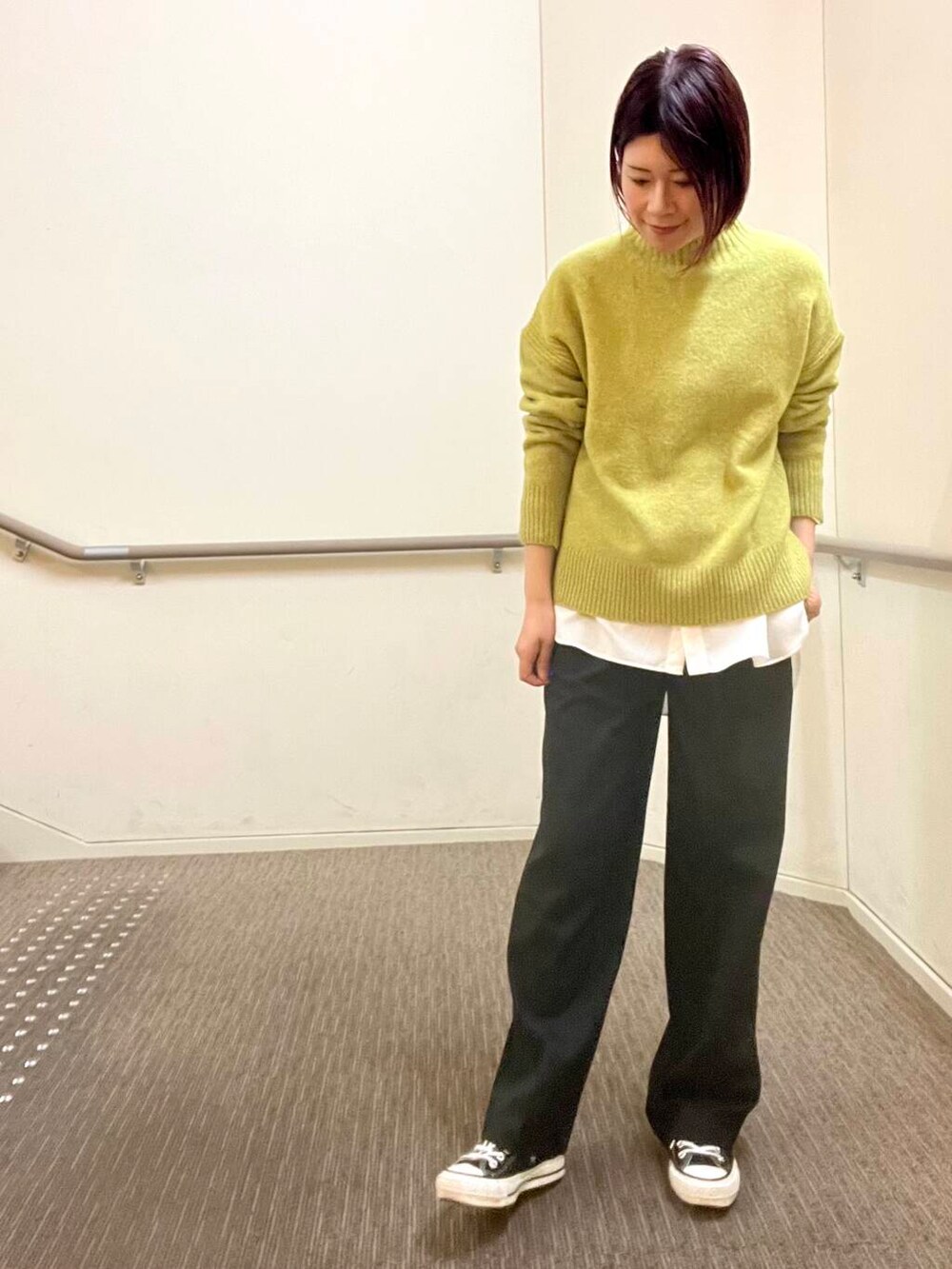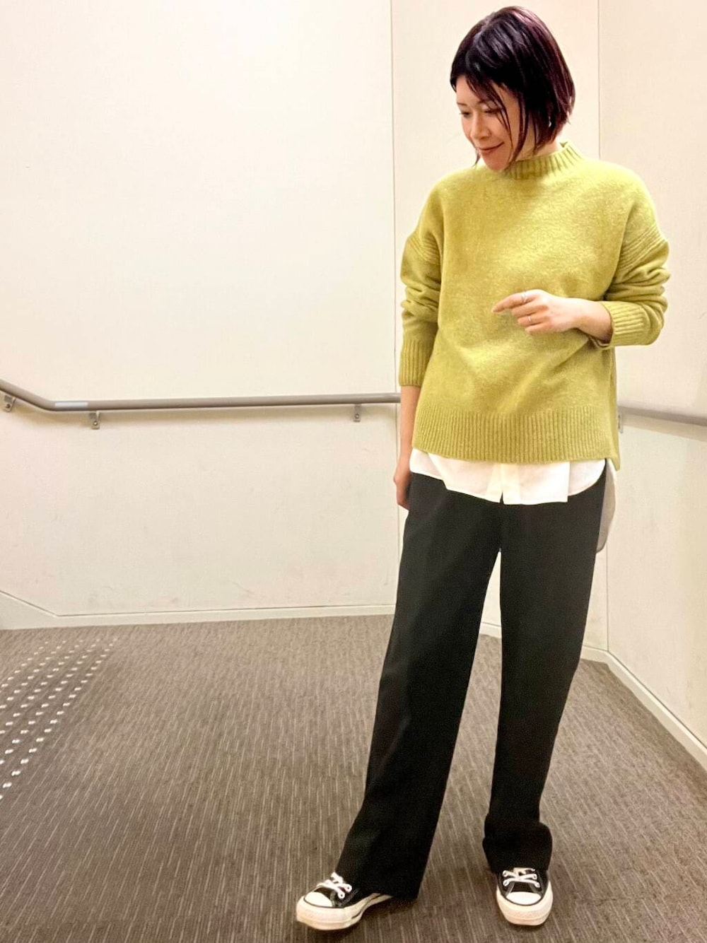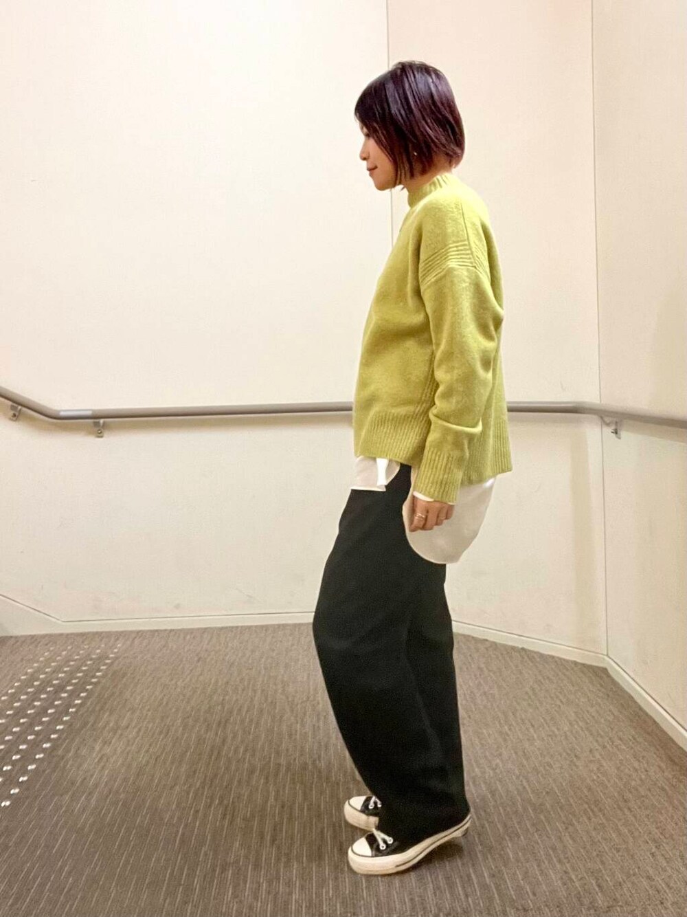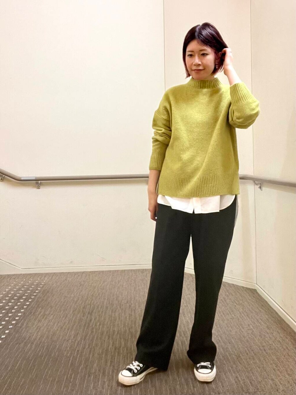 ハイネックのニットは柔らかくて肌触りが良く着やすいです。3色の展開でどの色も柔らかい色で可愛いです🧶ぜひお試しくださいね