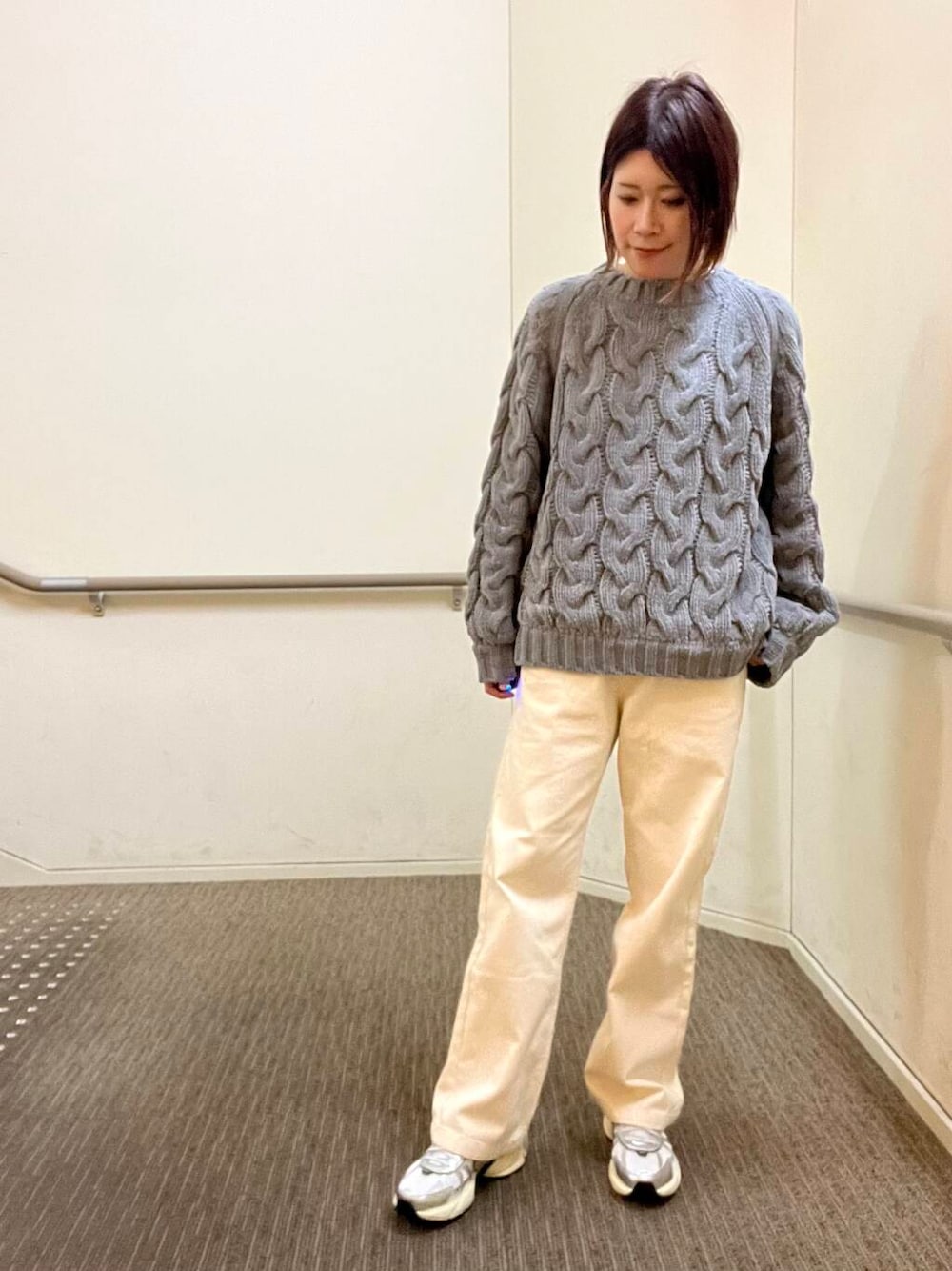 大きなケーブル編みが可愛いニットは柔らかくて肌触りが良くとても着やすいです🧶手洗い可能なのも嬉しいポイントです!ぜひお試しくださいね。