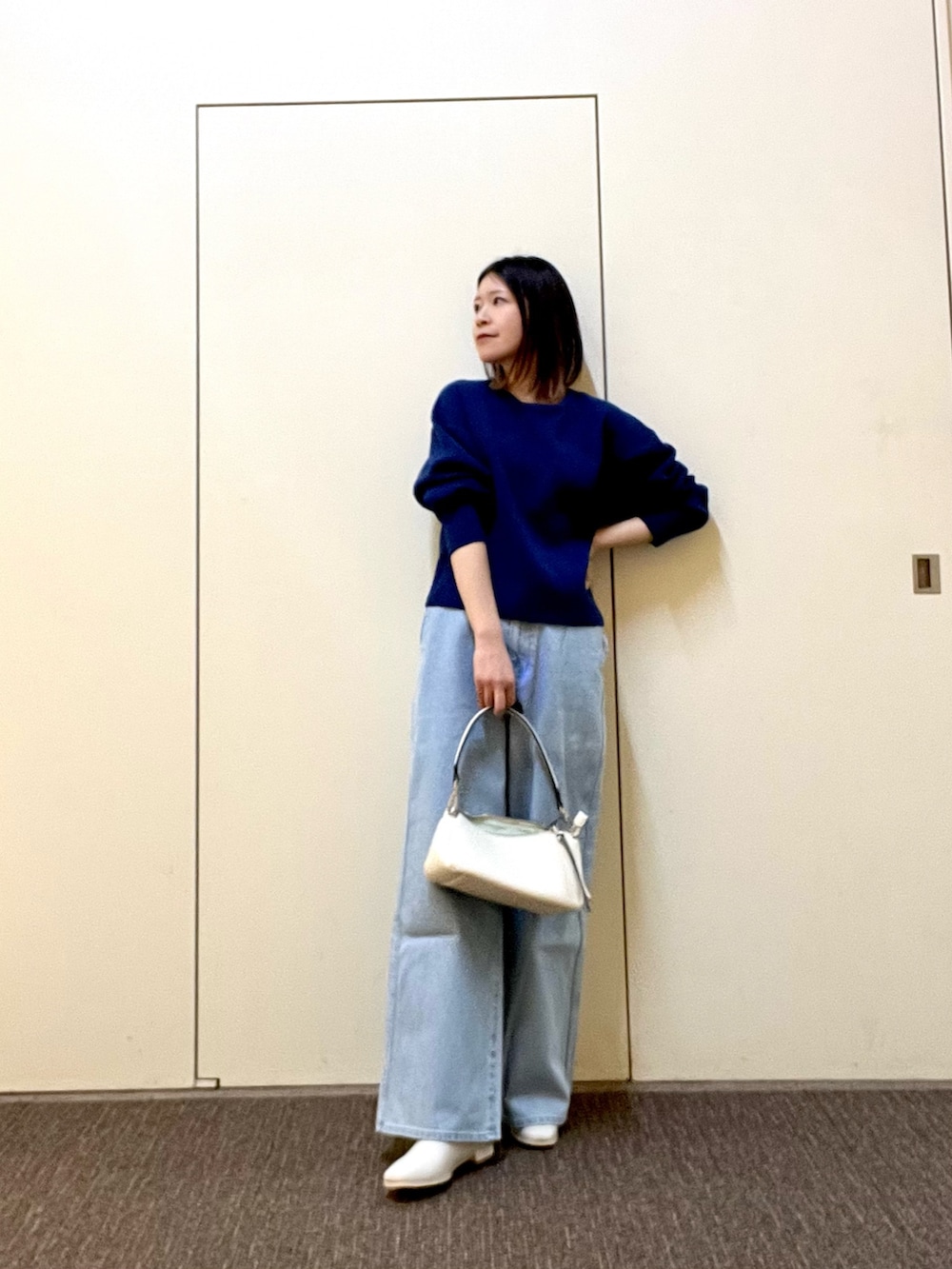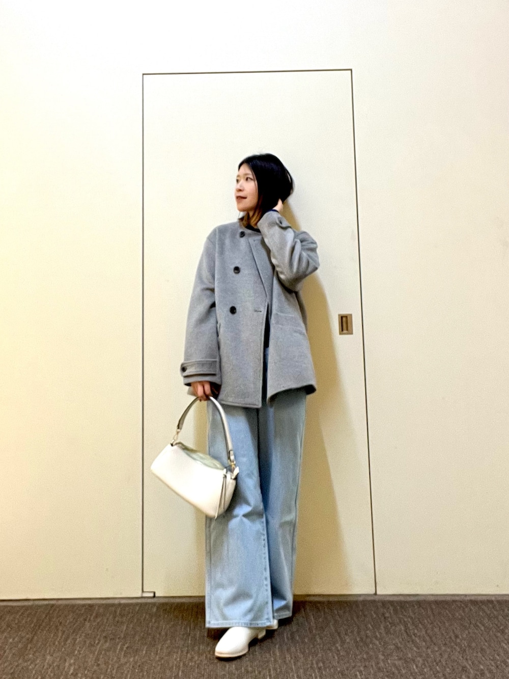 ノーカラーのコートはヒップが隠れる着丈で合わせるボトムスを選ばず羽織れます◎シンプルなデザインなのでオンオフ問わず幅広いシーンで活躍します👌🏻