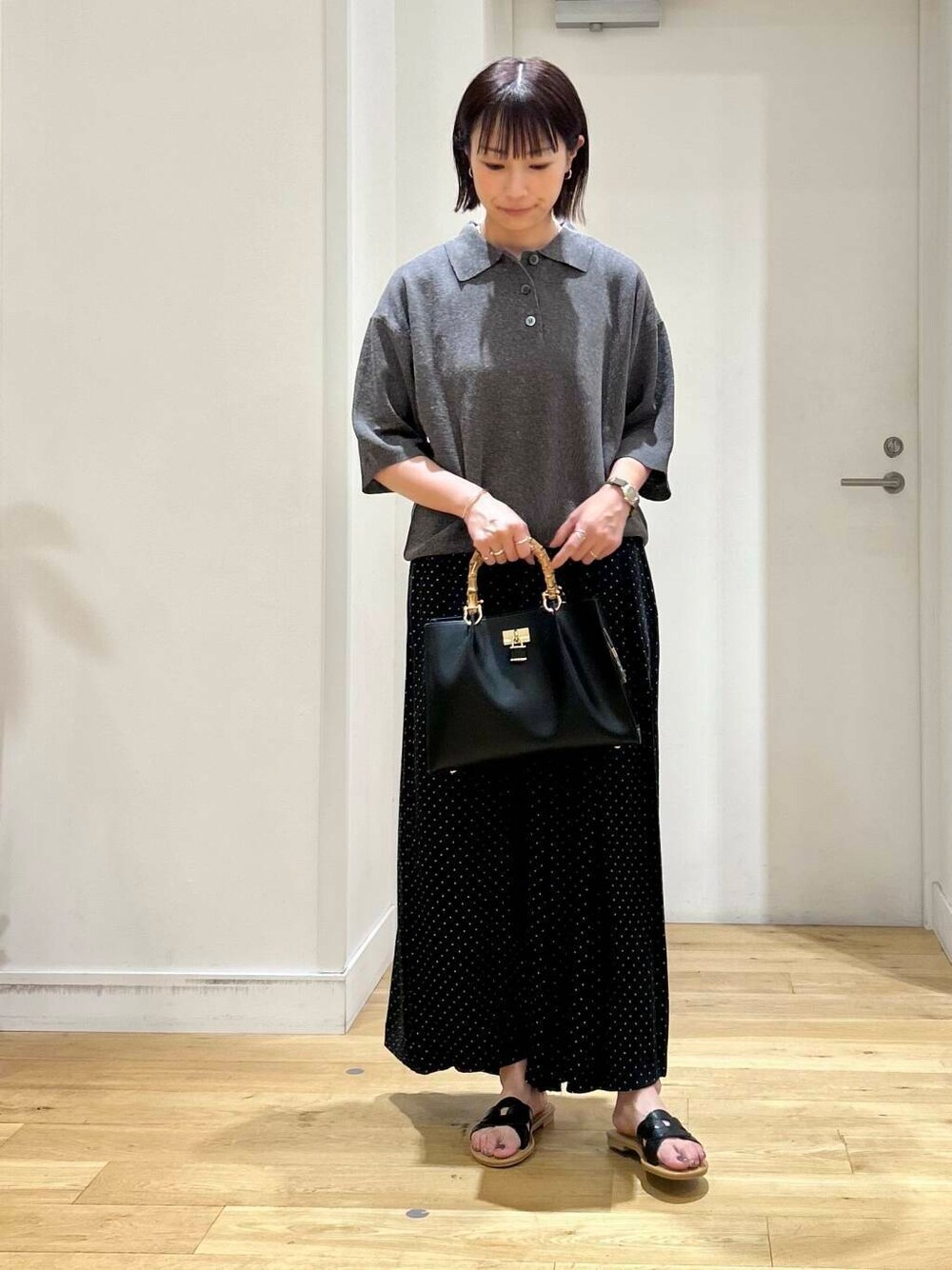 麻混素材でさらっとしていて軽い着心地のニットポロは、程よくゆとりをもたせたサイズ感がとても可愛いです!