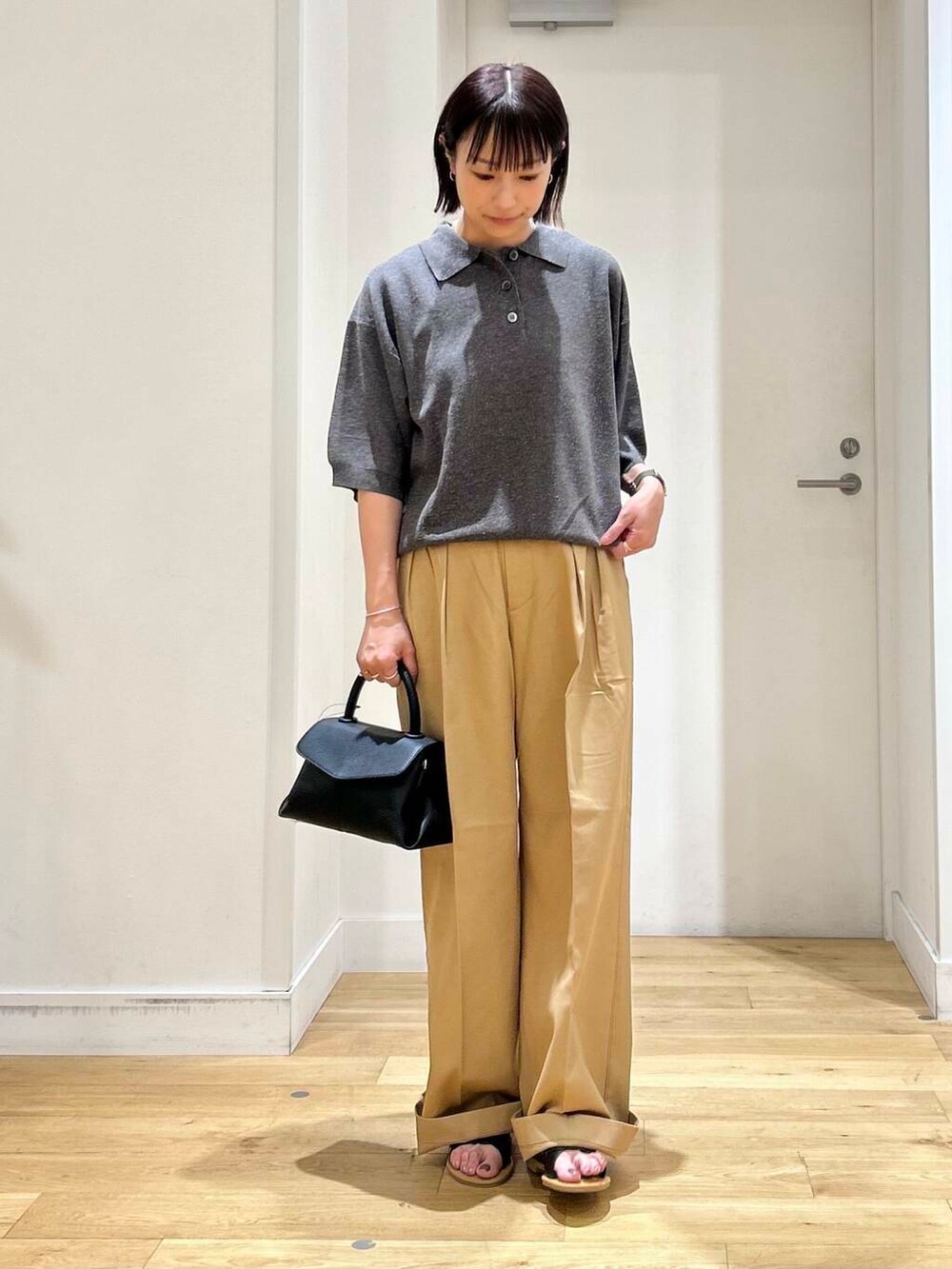 パンツは、156センチの私が着ると少し大きめだったので裾を折り返して着用しています。