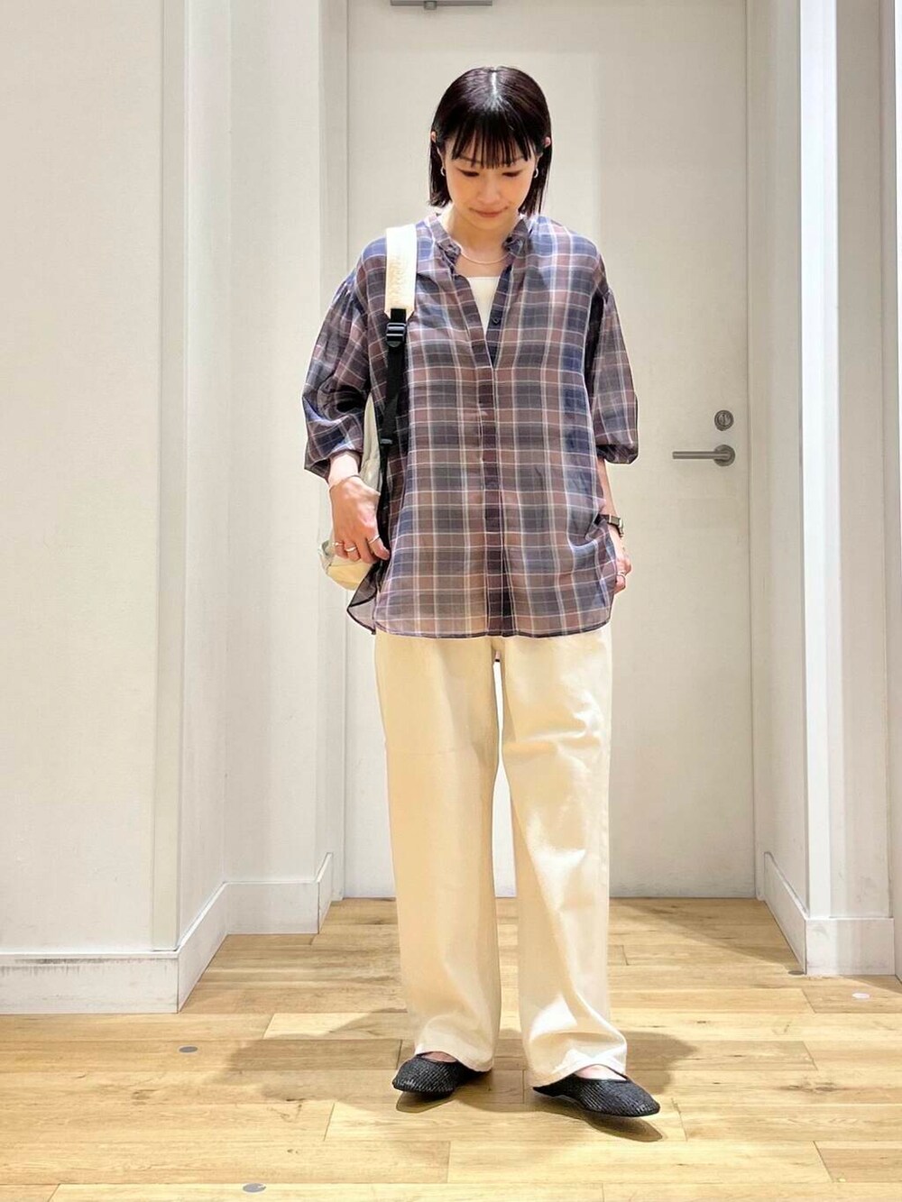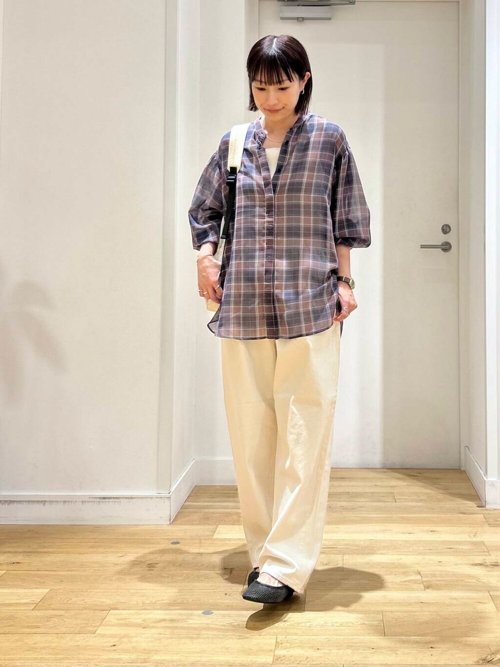 シアー感がオシャレな印象を与えてくれるチェックシャツ!