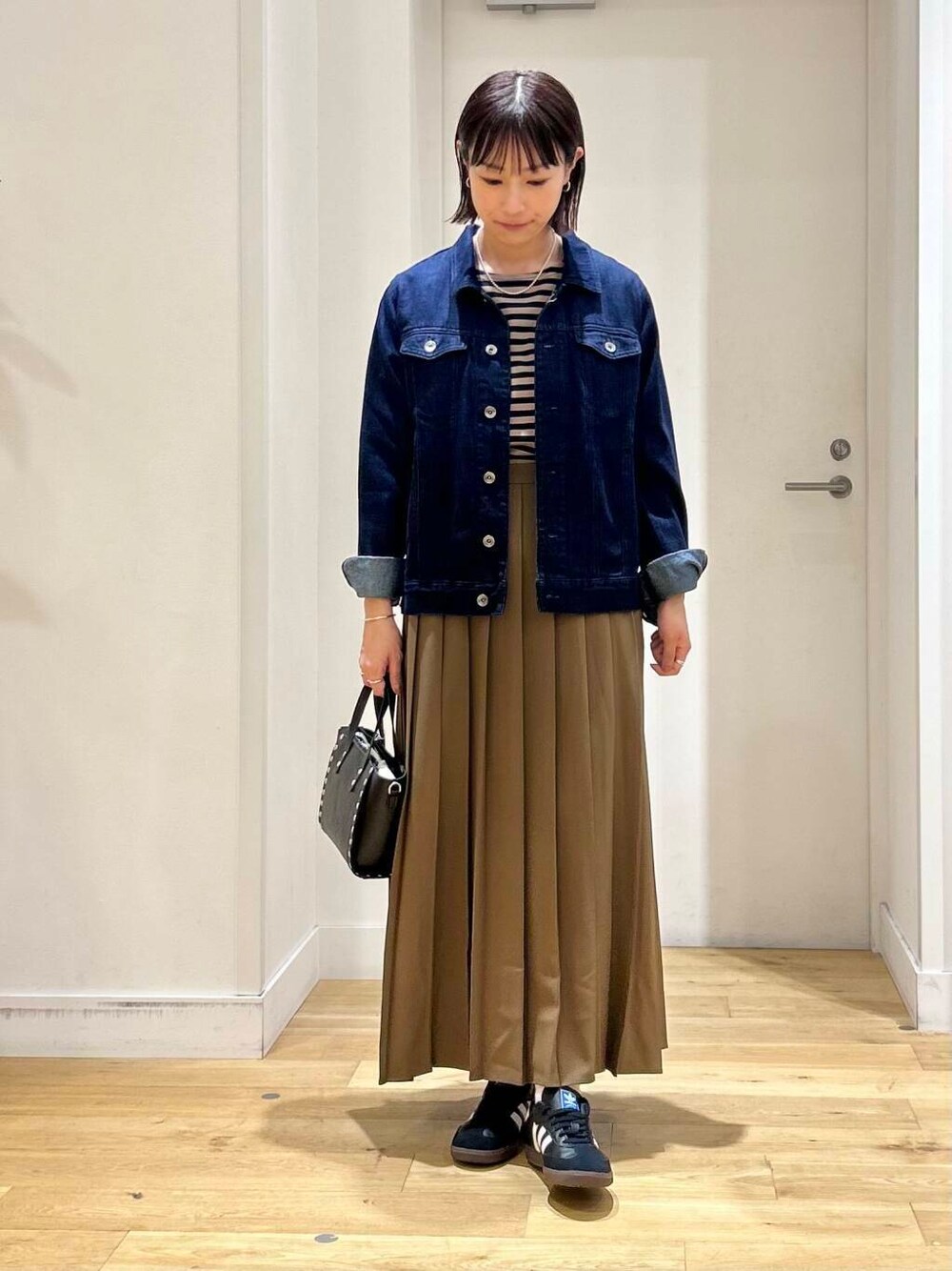 デニムジャケットは、綺麗なシルエットでありながら、程よくゆとりをもたせているので厚手のインナーも合わせやすいですよ!