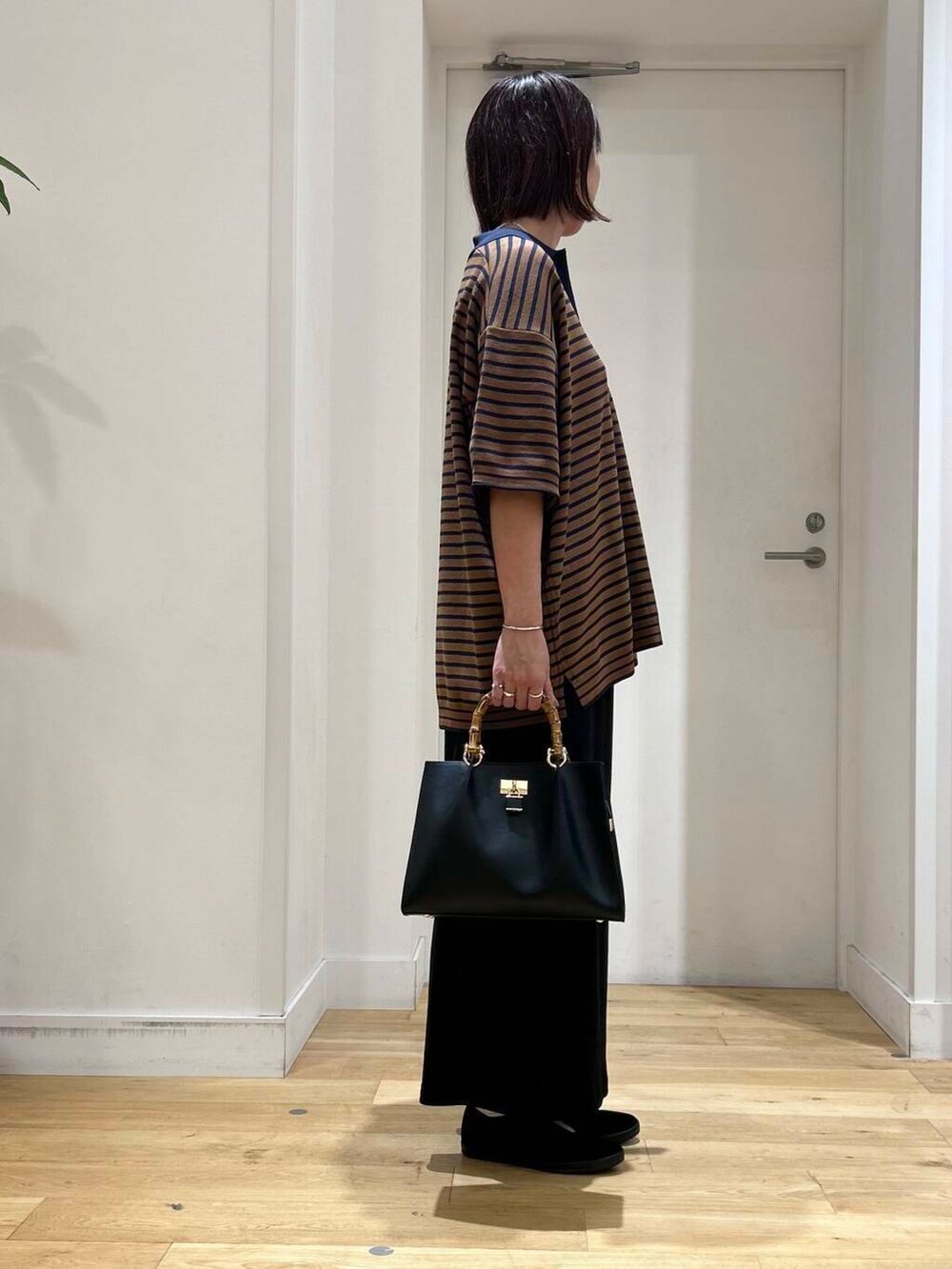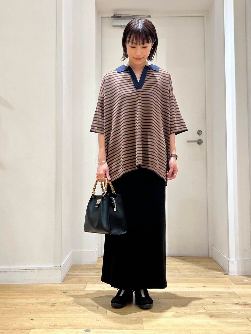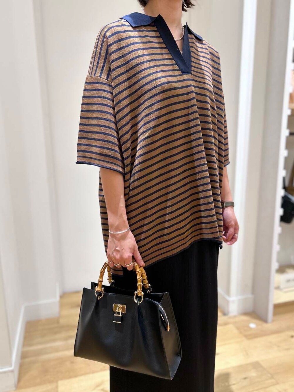 ゆったりなサイズ感ですがスキッパーデザインで顔まわりはスッキリとした印象に◎