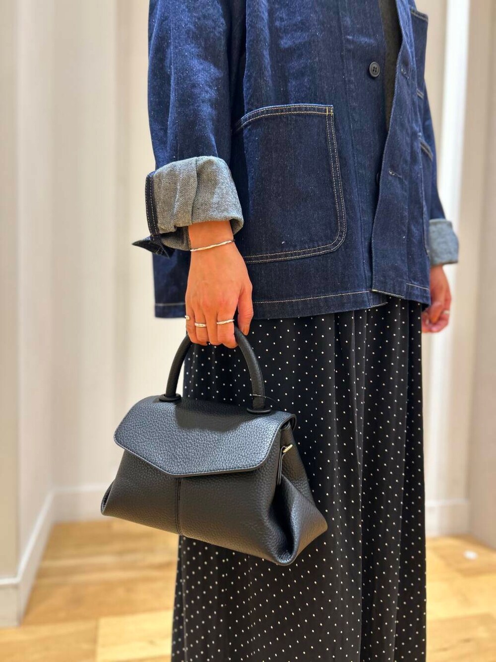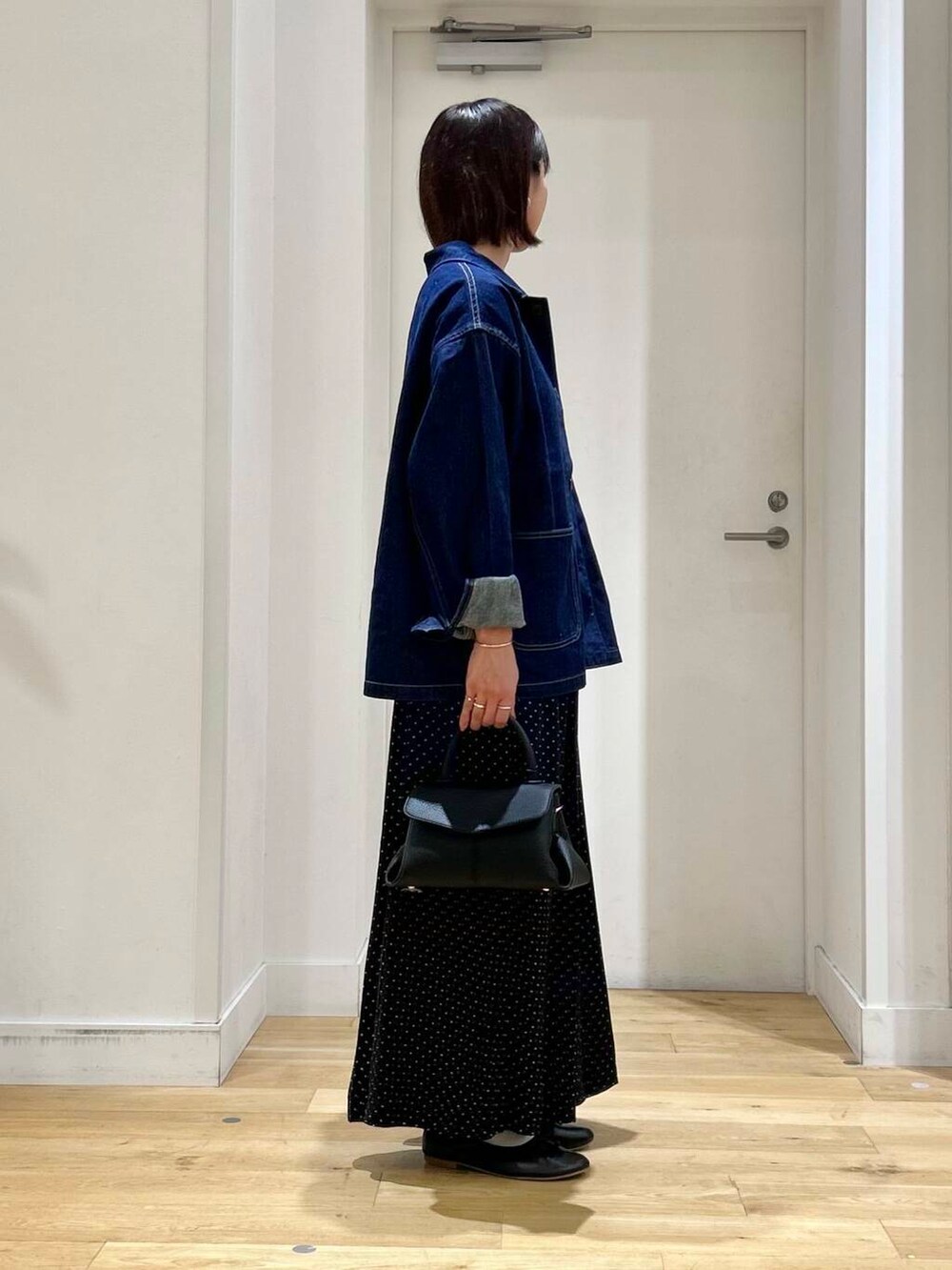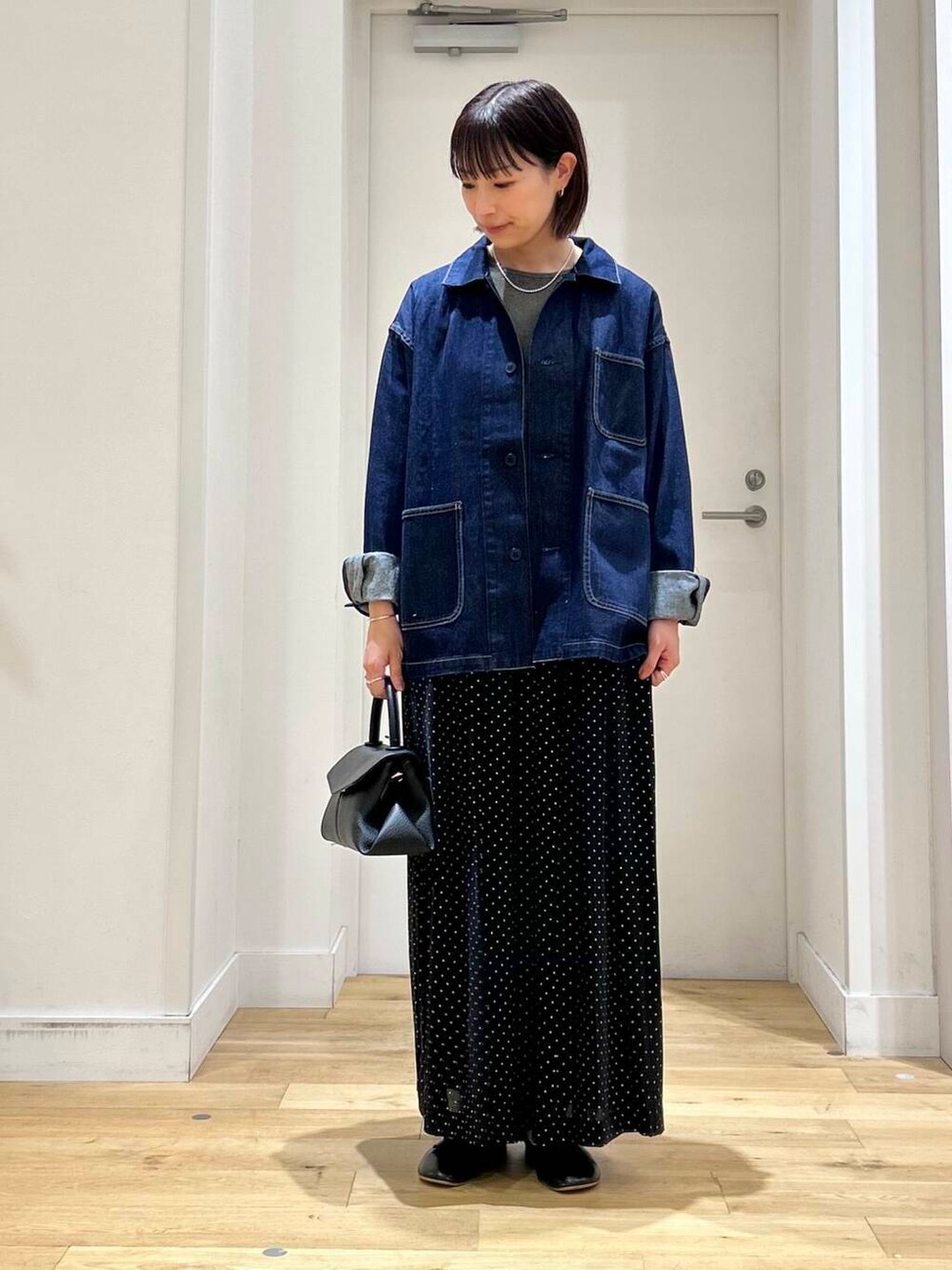 ゆったりしたサイズ感なので厚手のインナー合わせでも楽に着用できますよ!