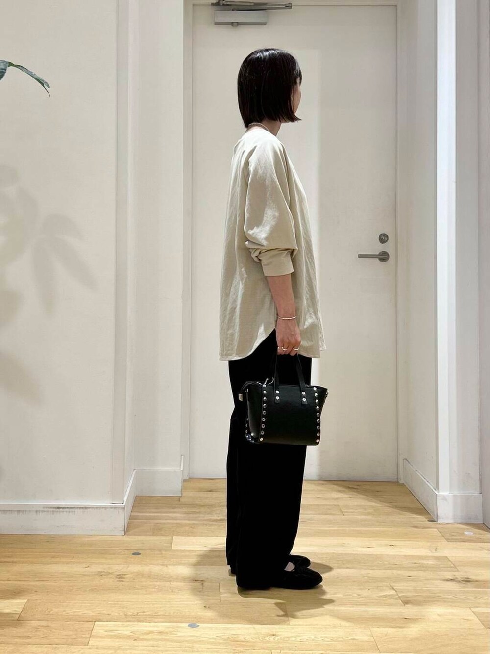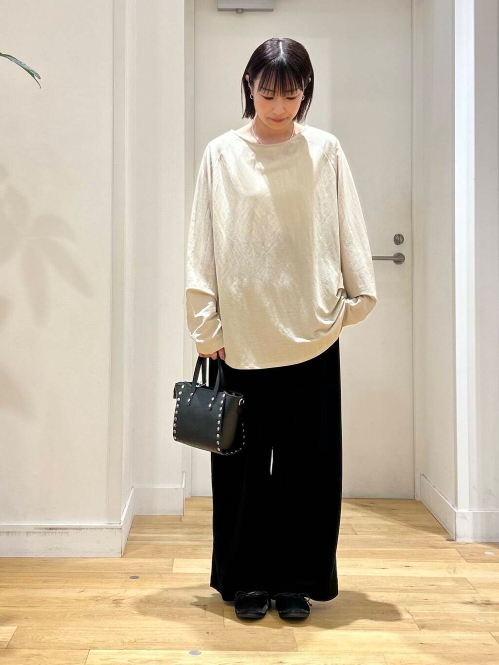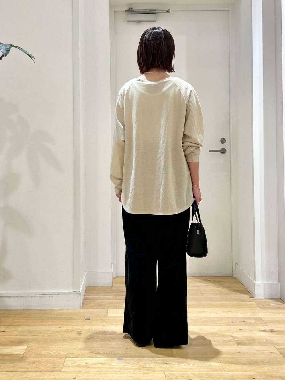 サラッとした生地感が上品な雰囲気を与えてくれてきれいめにもカジュアルにも合わせやすいアイテムです!