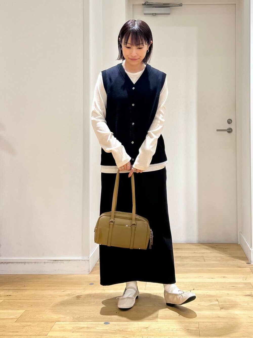 かぐれのノースリーブカーディガンは、一枚ではもちろん、涼しい時期には長袖のインナーを合わせても可愛いですよ!