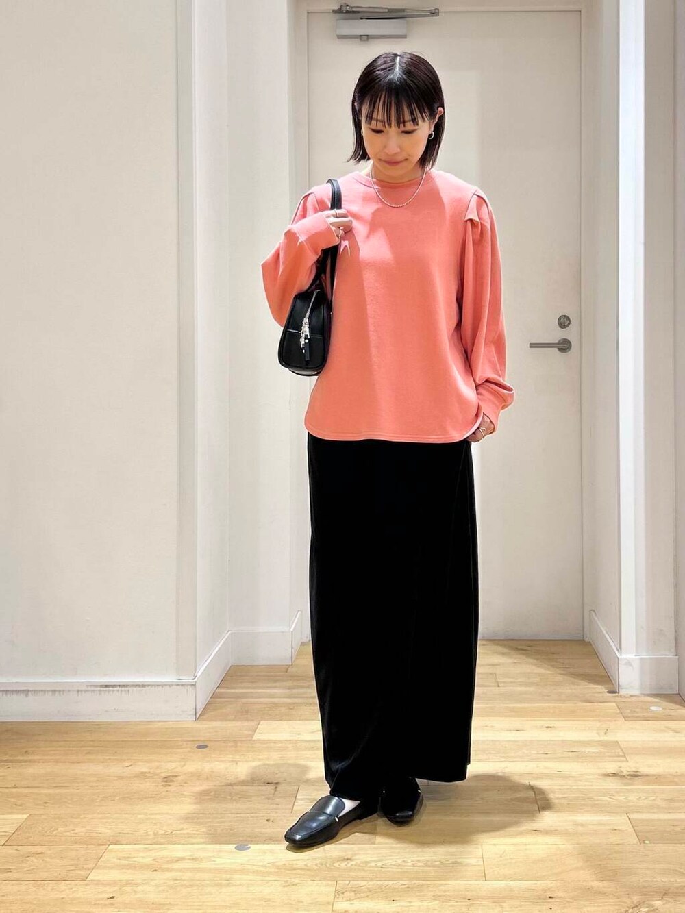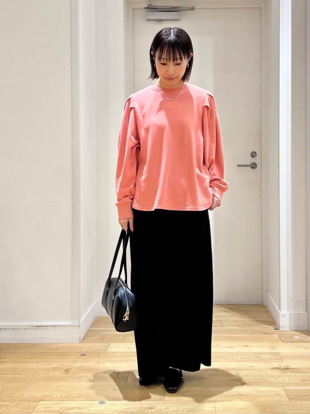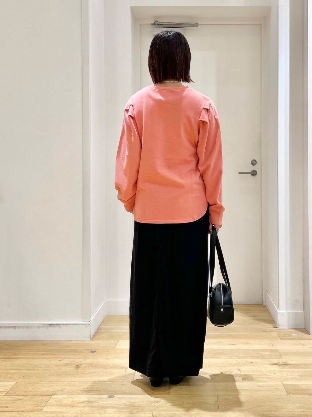 目を引くピンクのカラーが可愛いプルオーバーは、肩にタックを入れた立体的なシルエットがポイントに◎