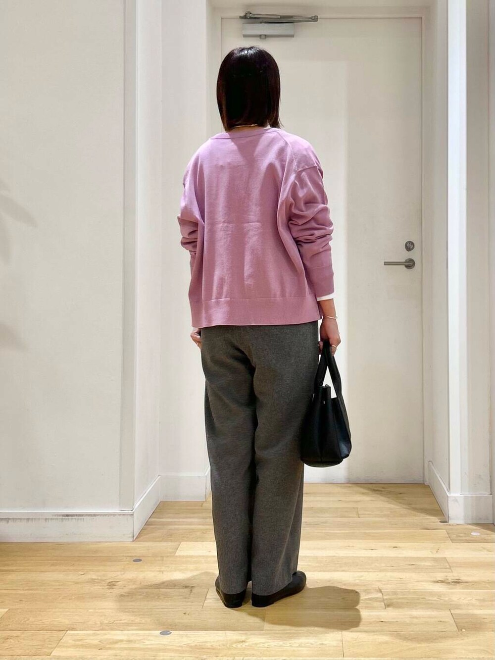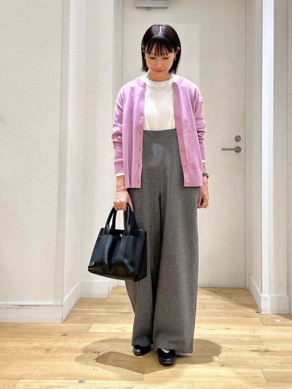 カーディガンは、スキッパーデザインがポイントになっていて、首元をスッキリと見せてくれます!
