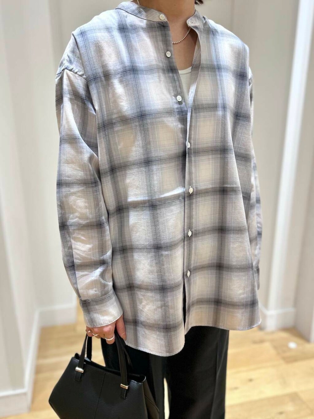バンドカラーデザインが首元をスッキリとみせてくれますよ!
