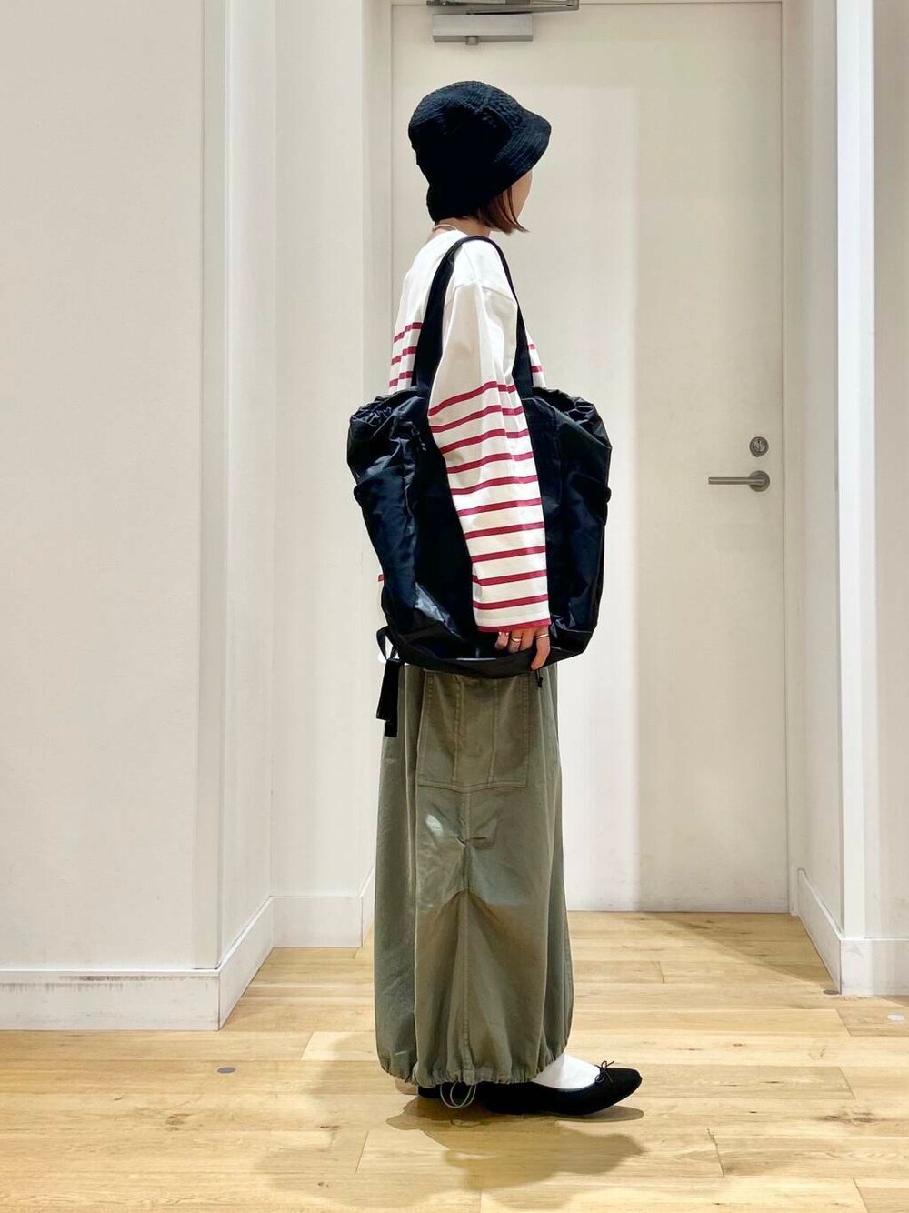 カーゴスカートは、裾がドロスト仕様になっていてシルエットを調節していただけます!