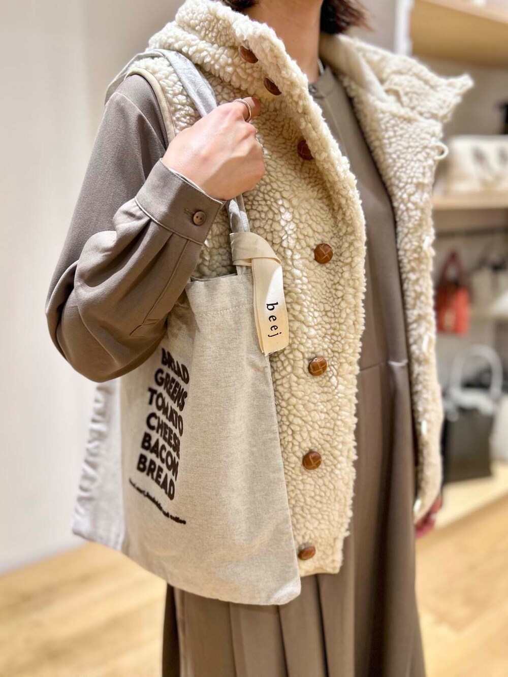襟元はノーカラーデザインなので、寒い時期にはタートルネックを合わせても可愛いですよ♪