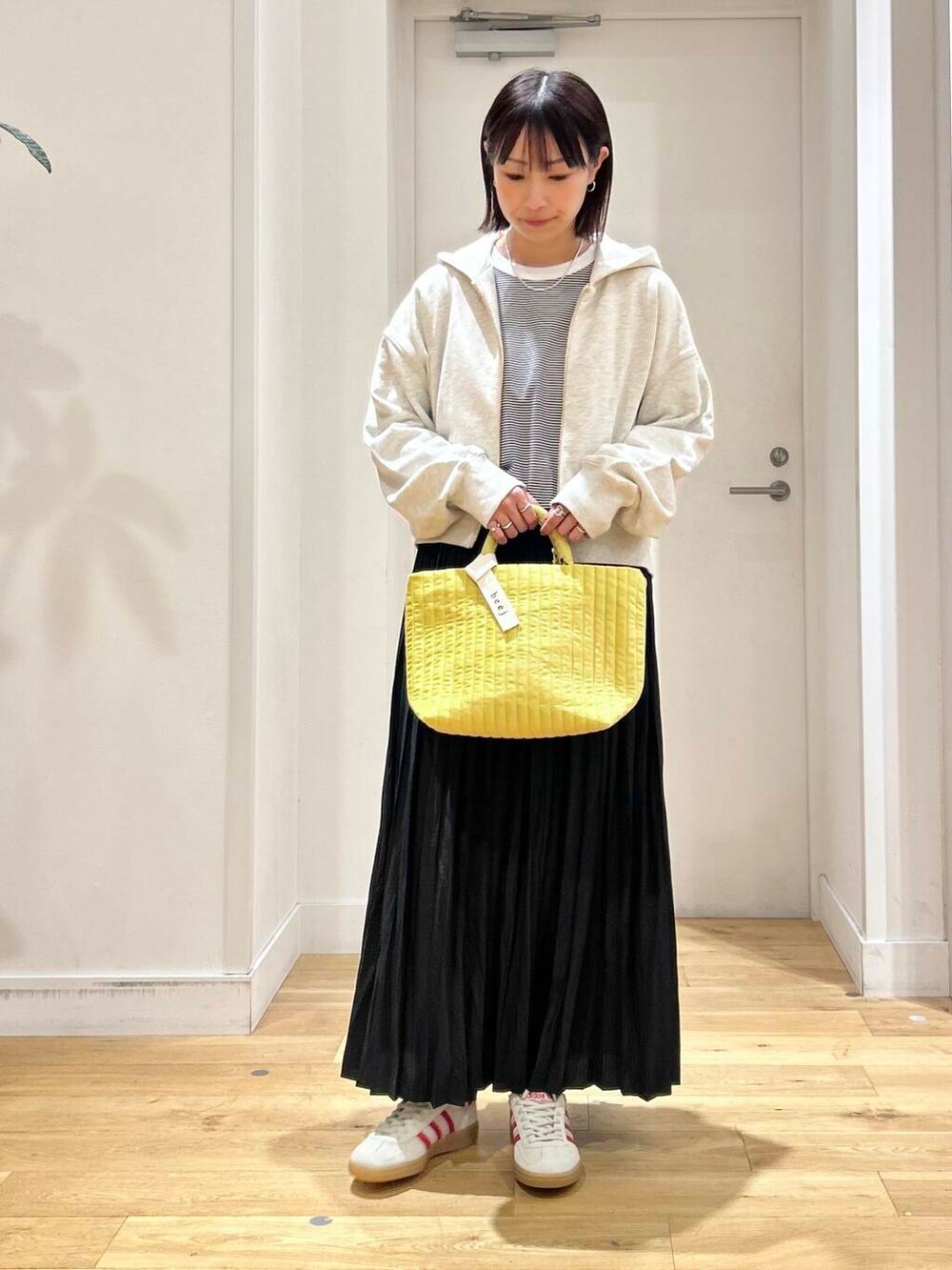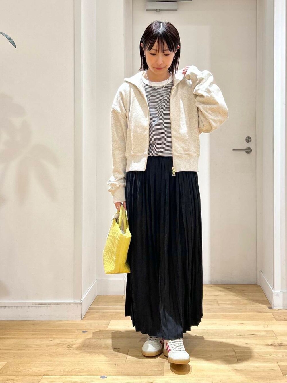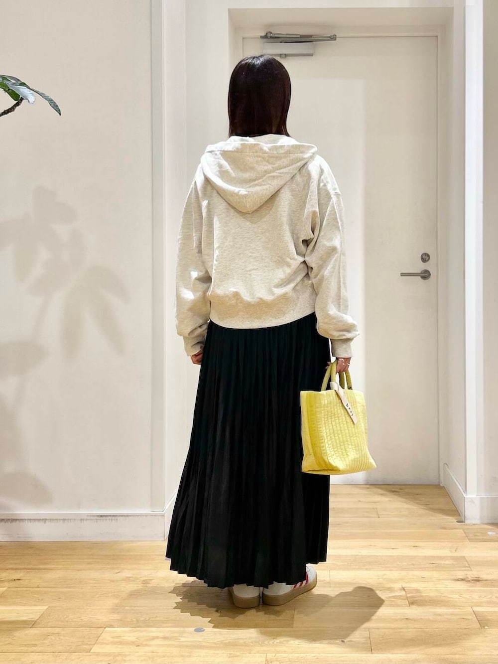 スカートは、落ち感のある素材でスッキリとしたシルエットなので、オーバーサイズのアイテムと合わせてもバランス良く着用できます!