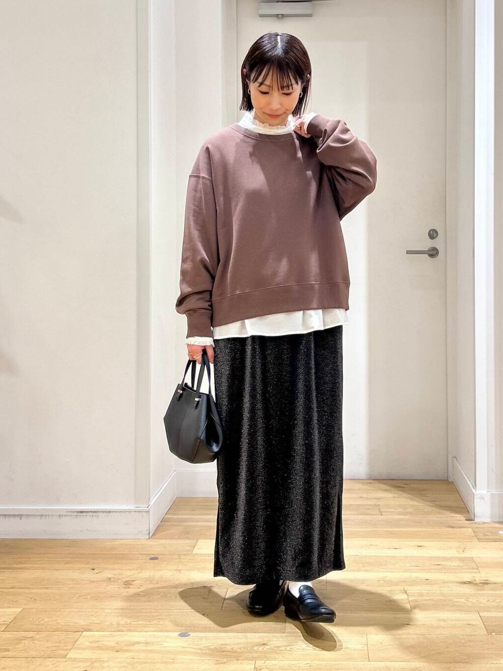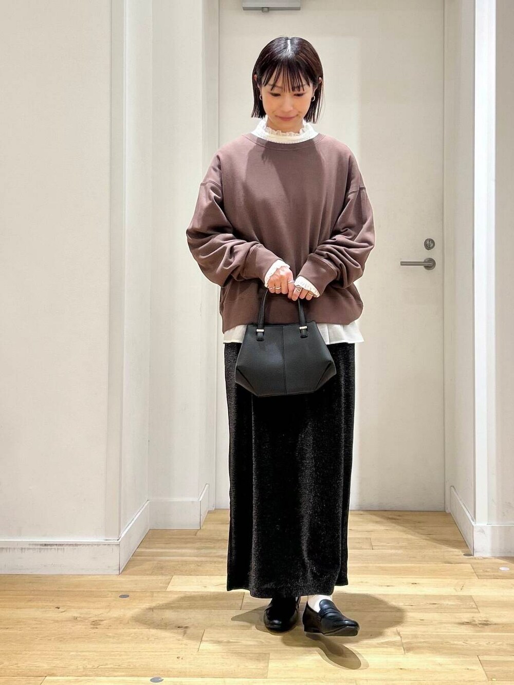 スッキリとしたシルエットなので、ゆったりめのトップスもバランス良く合わせていただけます!