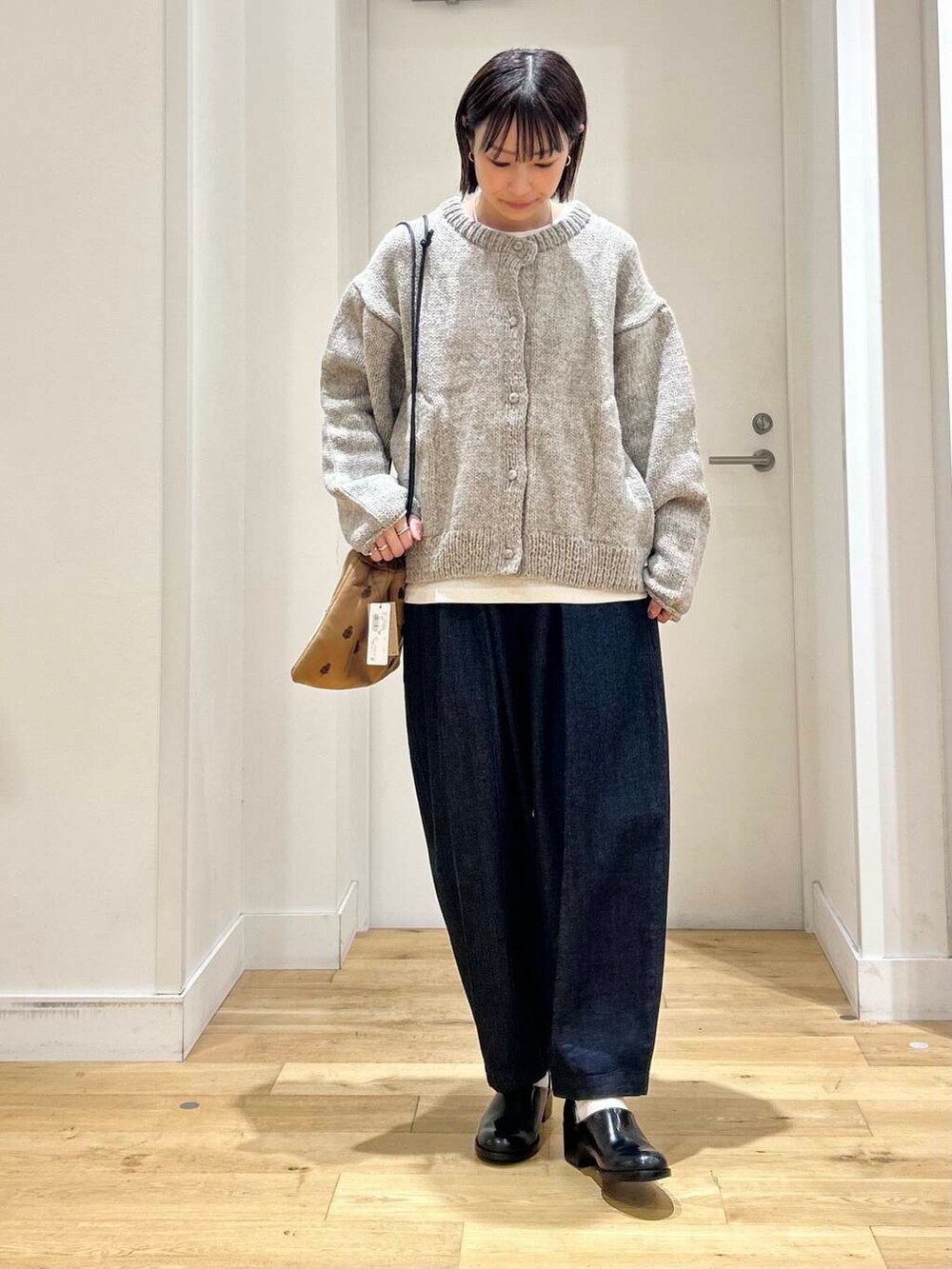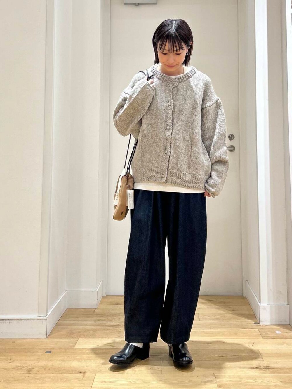 カーディガンは、さっくり編み上げたあたたかみのあるアイテム。