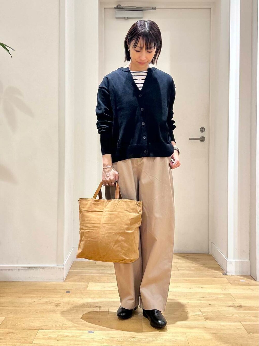 キーネックのデザインが珍しく、顔まわりをスッキリと見せてくれるカーディガン!