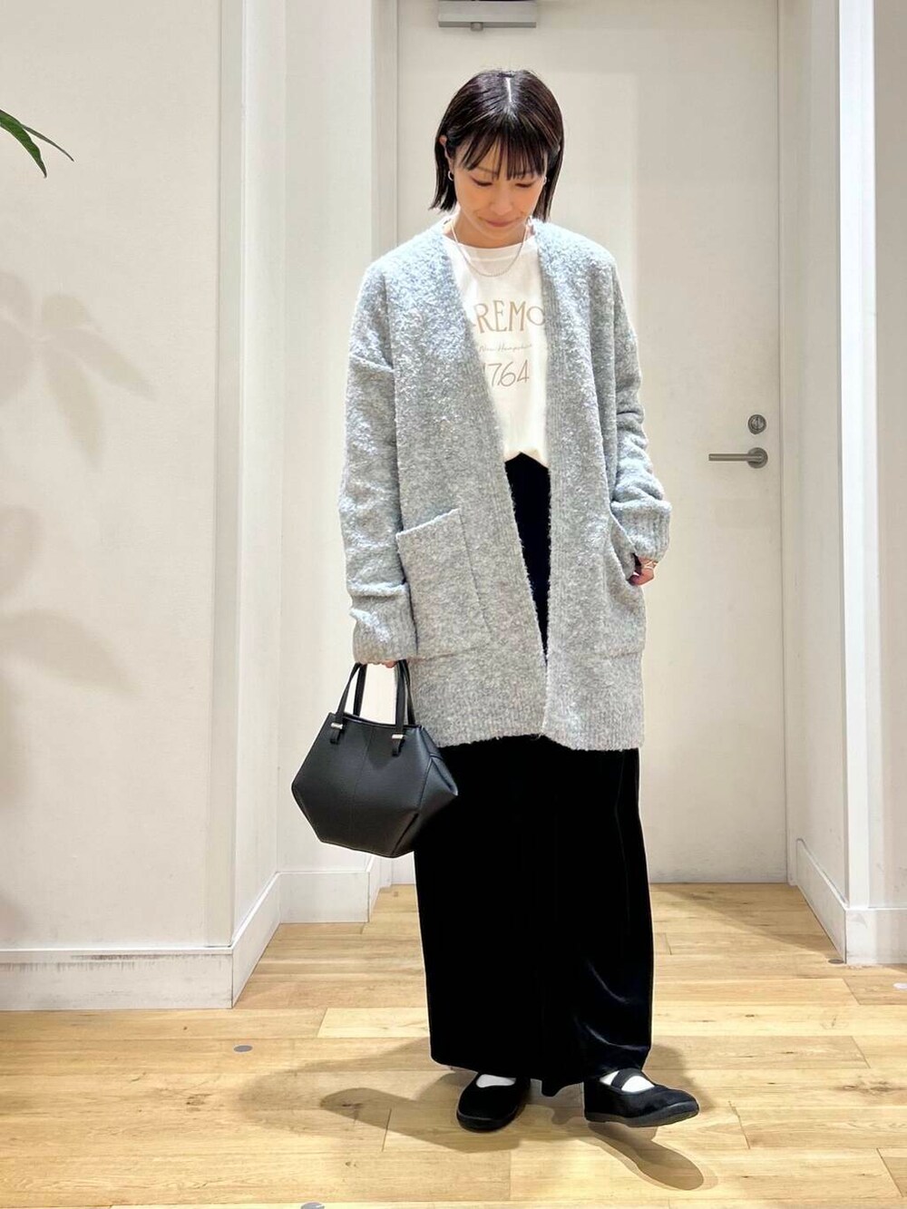 カーディガンは、モコモコとした生地感が可愛らしい温かみのある印象を与えてくれてコーディネートのポイントになってくれます!
